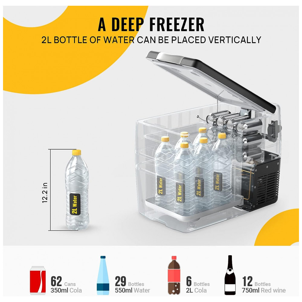 POR QUE MELHOR DO QUE UM REFRIGERADOR este refrigerador de carro de 9 Quart, 8 Litros pode atingir uma temperatura de congelamento com a tecnologia de refrigeração de compressor, nenhum gelo é necessário enquanto o refrigerador tradicional precisa de libras de gelo e reduz a capacidade de uso.