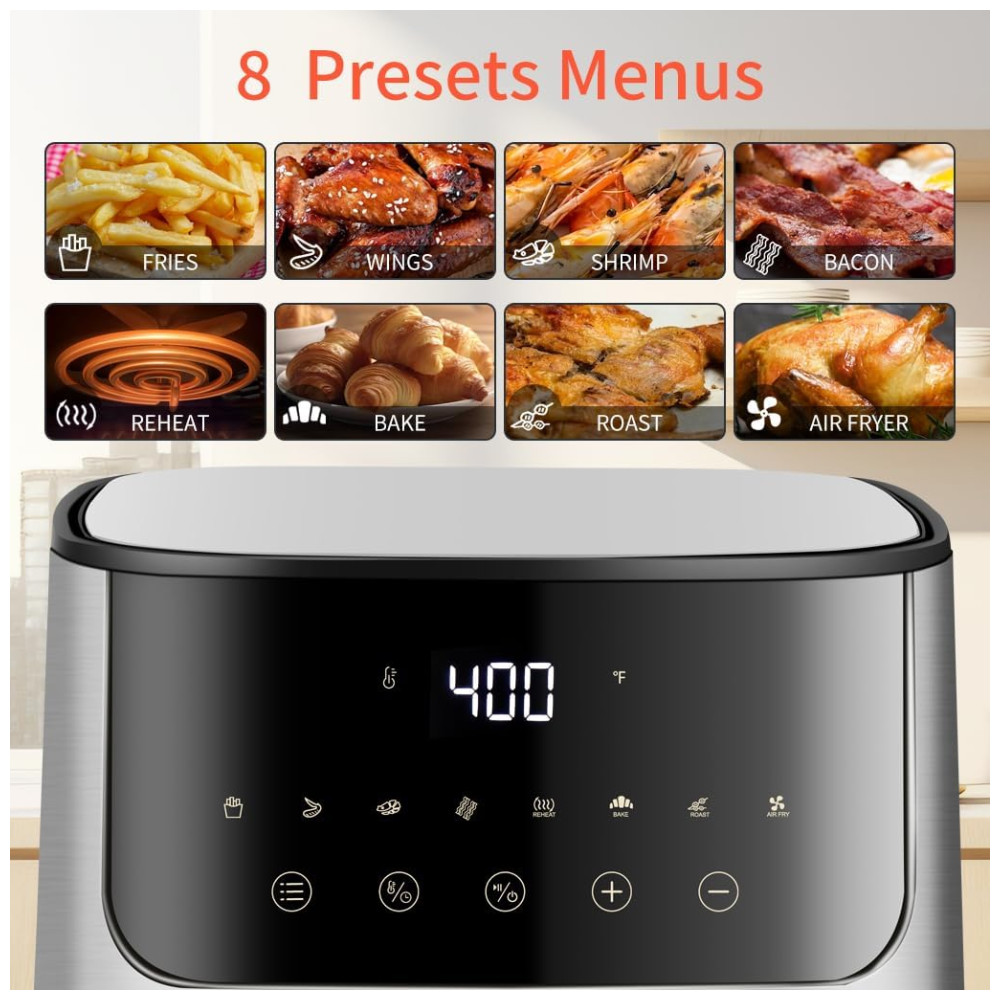 Fritadeira Elétrica Air Fryer 4,6L com Cesta Antiaderente, Temporizador, Controle de Temperatura e 8 Predefinições, 110V 1400W, ASZ, Prata e Preta