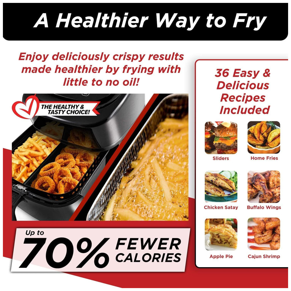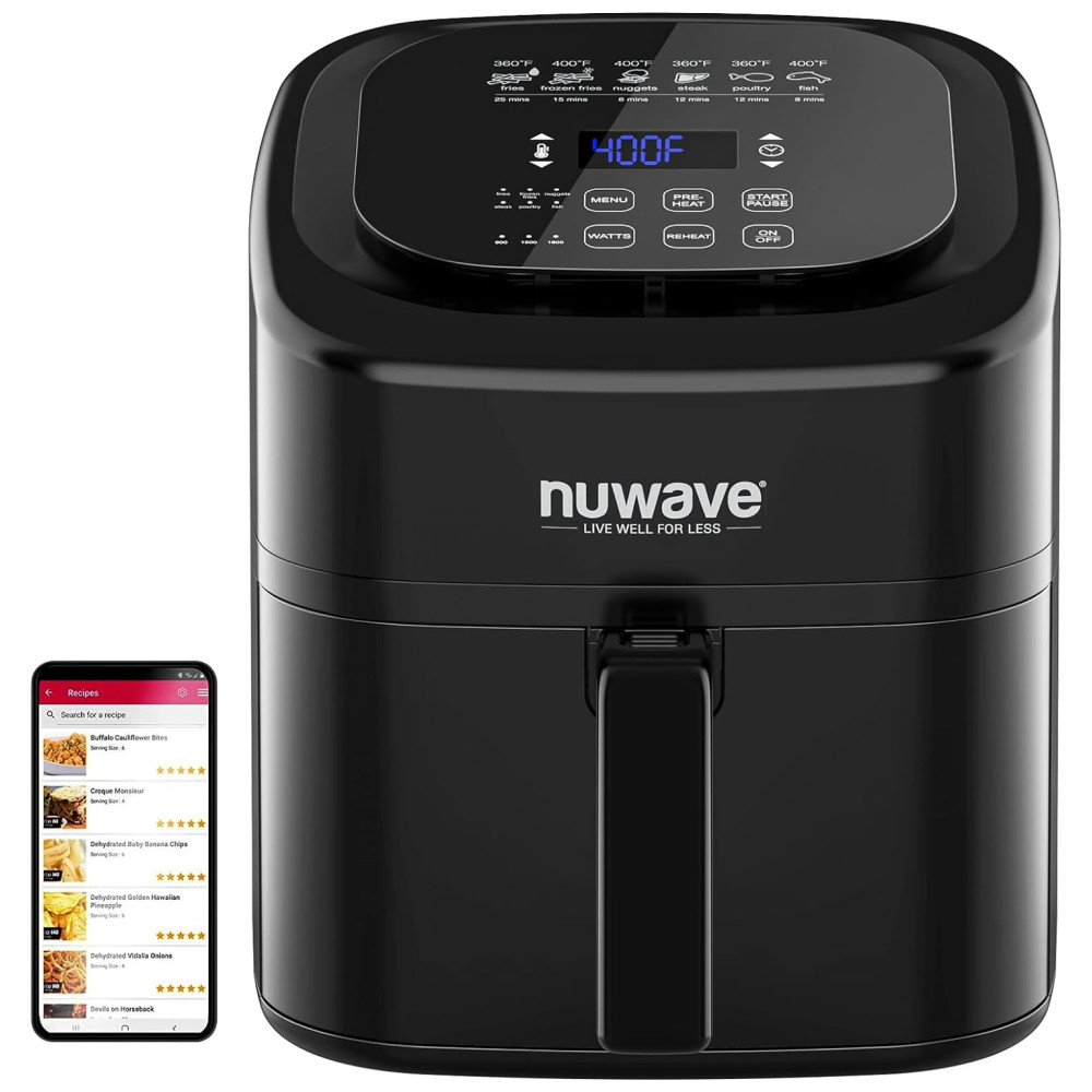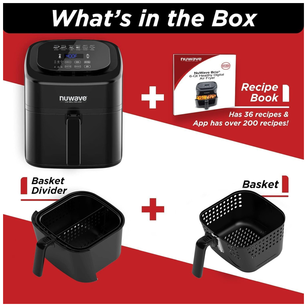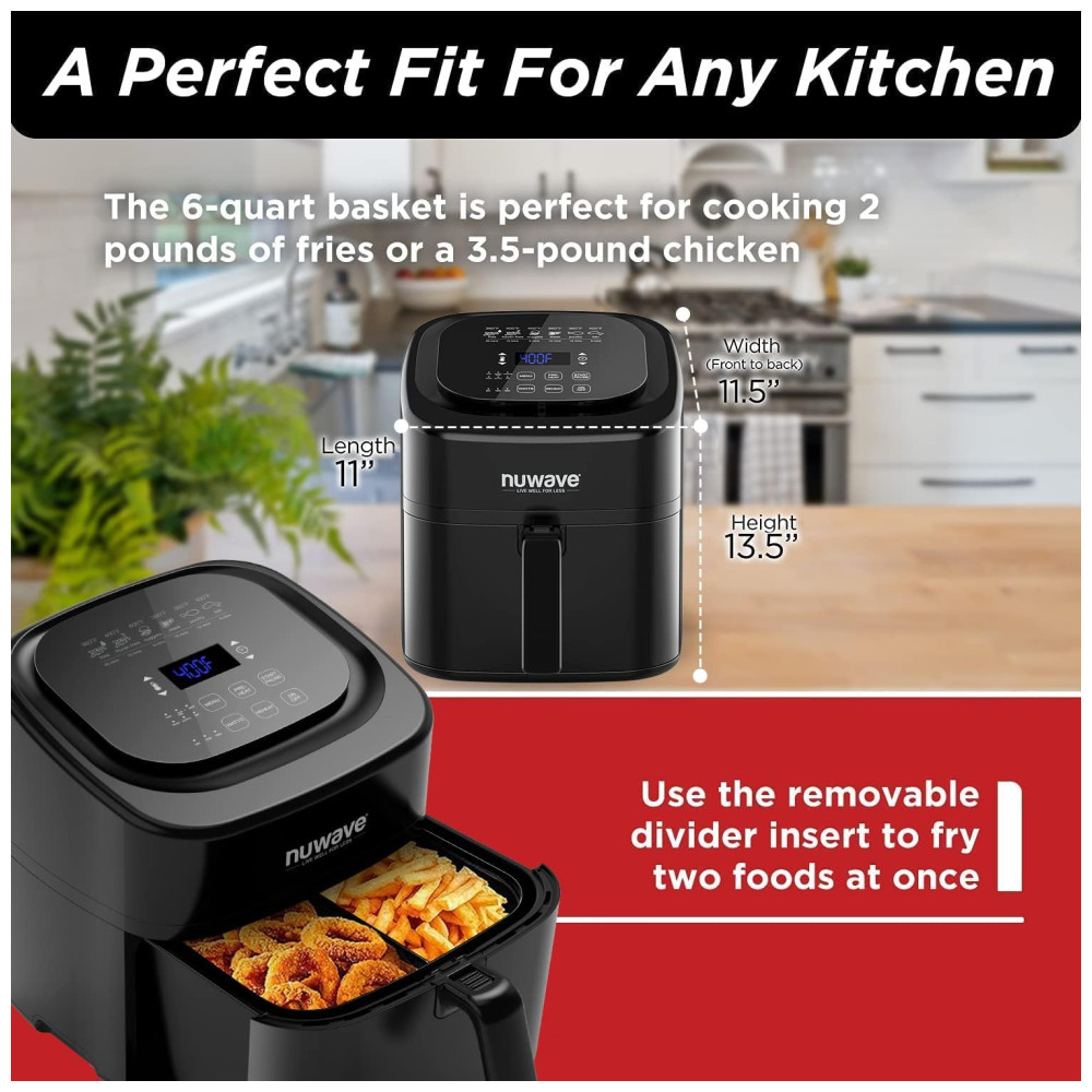 Fritadeira Elétrica Air Fryer 5,6L com 6 Funções Predefinidas e Divisória Removível, 110V 1800W, Nuwave, Preto