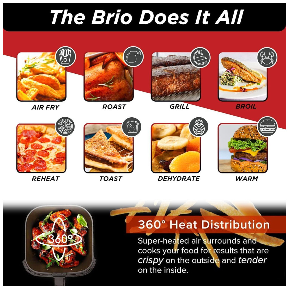Apresentando a Fritadeira Digital Nuwave Brio Healthy de 6 Litros TEMPERATURA CONSISTENTE Outras fritadeiras podem desviar até 22 C da temperatura definida. A Brio garante que a te…