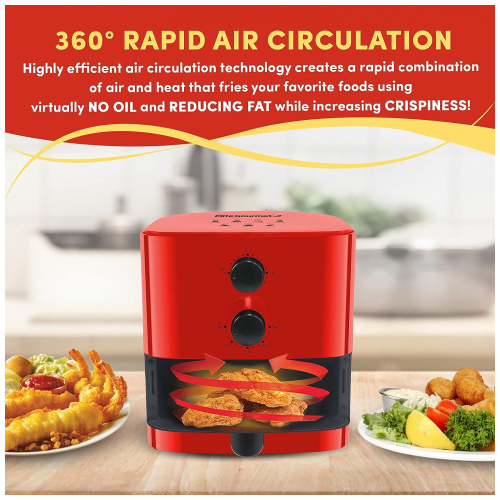 Fritadeira Elétrica AirFryer 1L de Capacidade e Desligamento Automático, 700W, 110v, ELITE GOURMET EAF 3218R, Vermelho