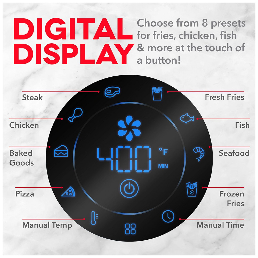 Tamanho ideal para preparar batatas fritas de batata doce, asas de frango picantes, legumes fritos e muito mais, tudo em menos tempo do que leva para pré aquecer o forno.