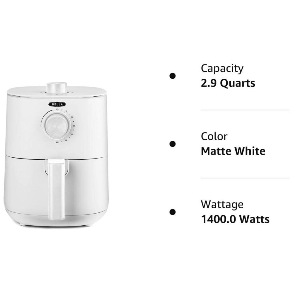 Fritadeira Elétrica AirFryer 2.9L de Capacidade e Desligamento Automático, Branca, 110v, BELLA 17275, Branco: Conheça a Fritadeira Elétrica Manual BELLA 2,9 Litros e Forno Multicooker 5 em 1 Fácil de Usar, Compacta e Saudável COZINHAR SEM ESFORÇO AO SEU ALCANCE Diga adeus aos botões complicados e olá a pratos deliciosos e sem complicações Nossa fritadeira compacta possui controles simples por botão, tornando o cozimento fácil e divertido.