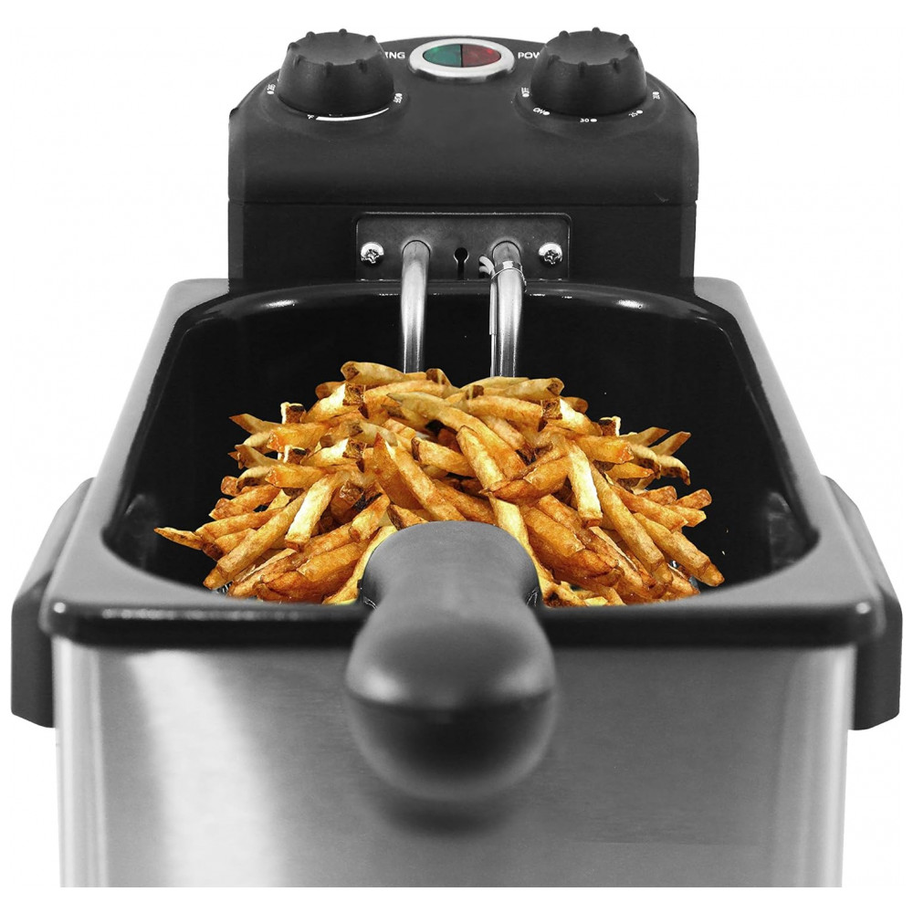 Fritadeira Elétrica Industrial a Óleo 3.5L com Controle de Temperatura, Aço Inox, 110v, ELITE GOURMET EDF 3500, Cinza: Descubra a Fritadeira Elétrica de Imersão Elite Gourmet EDF 3500 GRANDE CAPACIDADE Com uma capacidade total de 3,5 litros equivalente a 14 xícaras , você pode fritar até 1,04 kg de alimentos por vez, como asas de frango ou anéis de cebola crocantes.