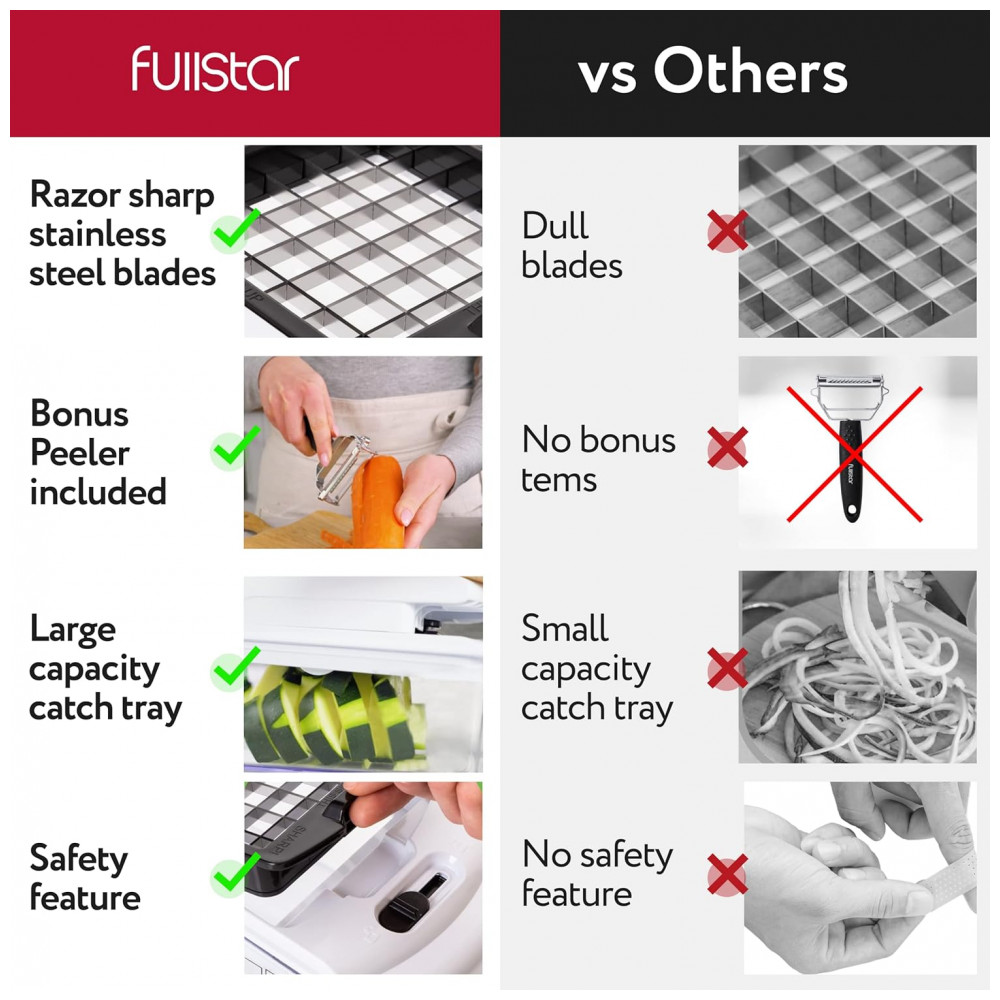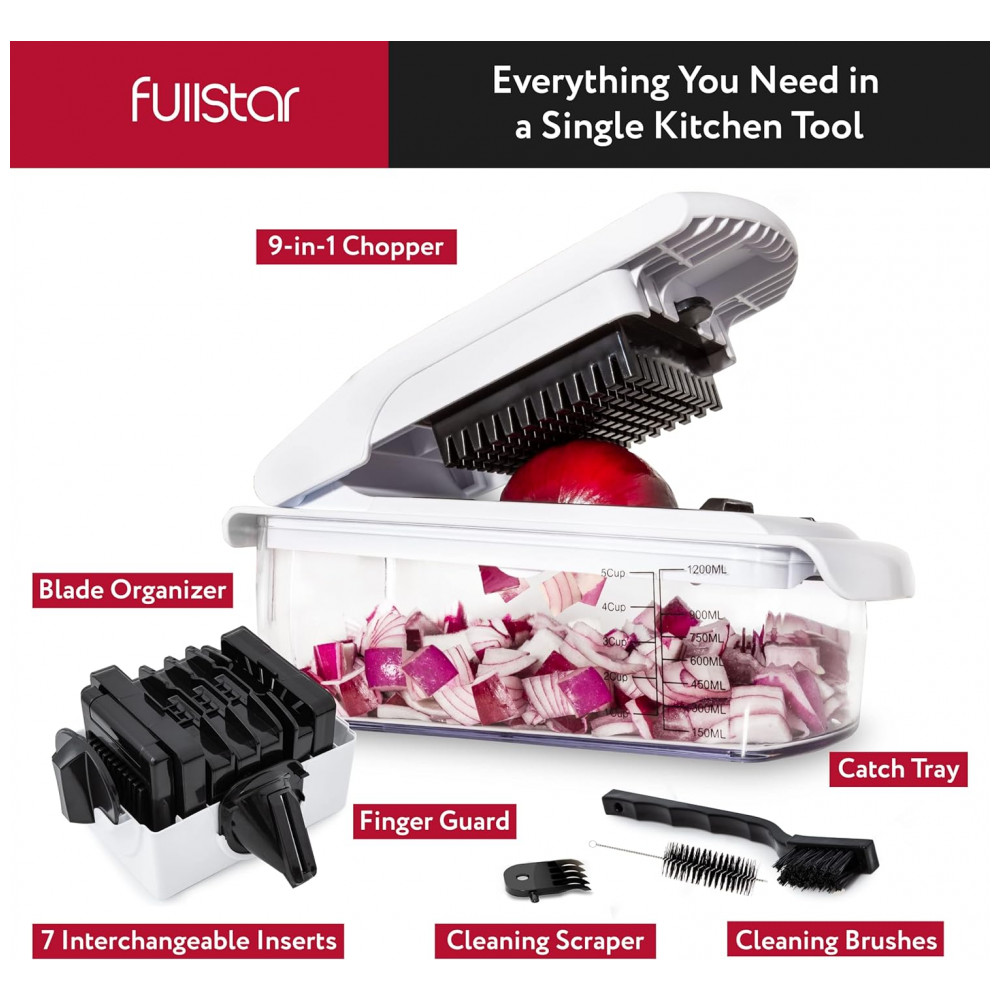 Fullstar Picador de Legumes e Vegetais 7 em 1 Ajustável, Recipiente de 1.2L, Branco