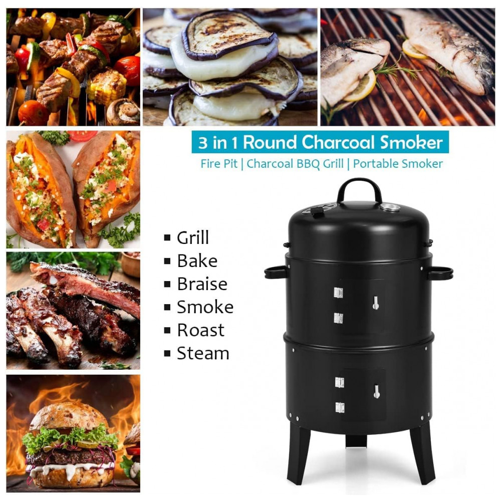 Design multicamadas O corpo principal do fumante é dividido em três camadas, para que o fundo possa ser como uma fogueira e a grade ajustável do barril é ideal para cozinhar, grelh…