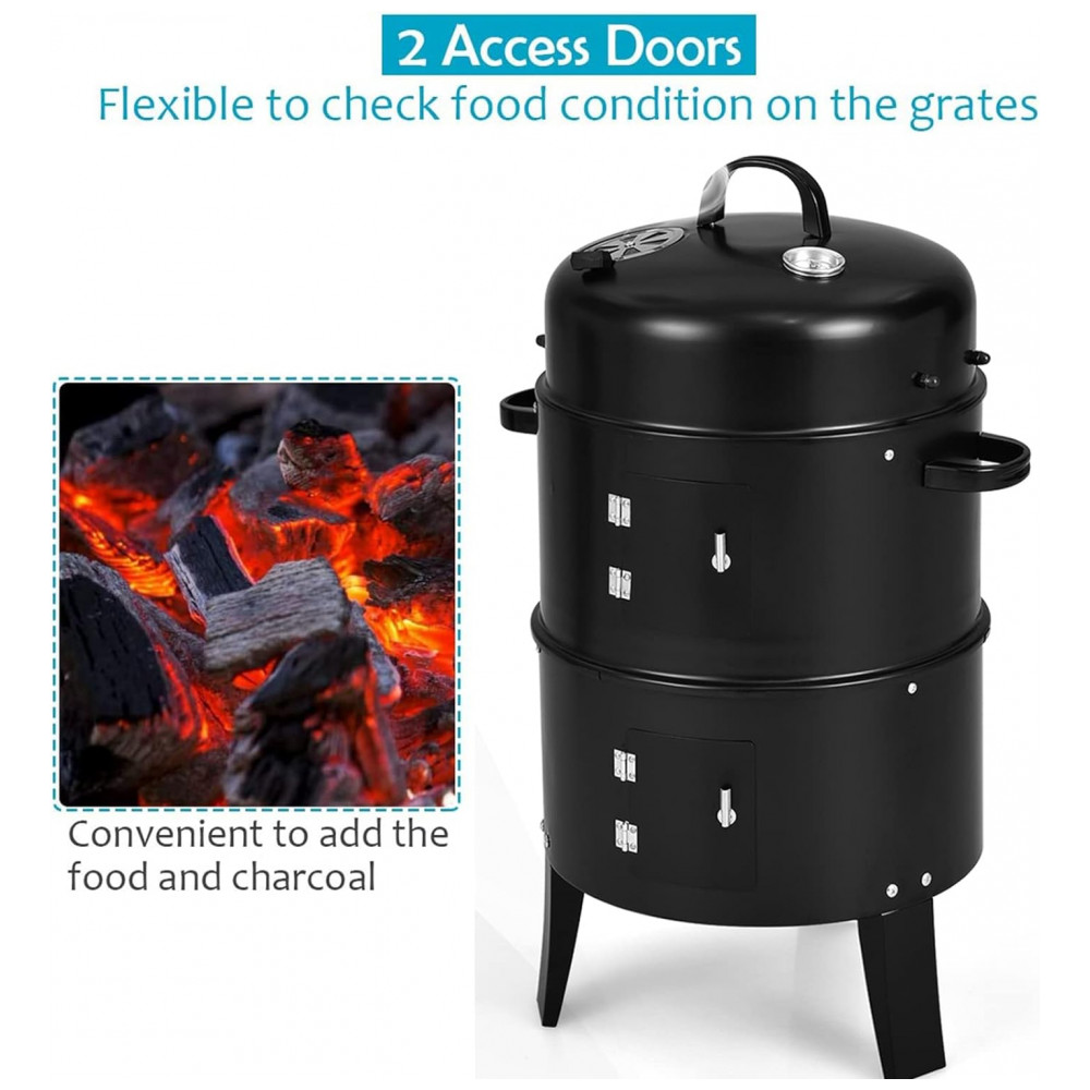 Design pensativo Esta churrasqueira para fumantes está equipada com 2 portas de acesso para verificar a condição dos alimentos e adicionar carvão a tempo.