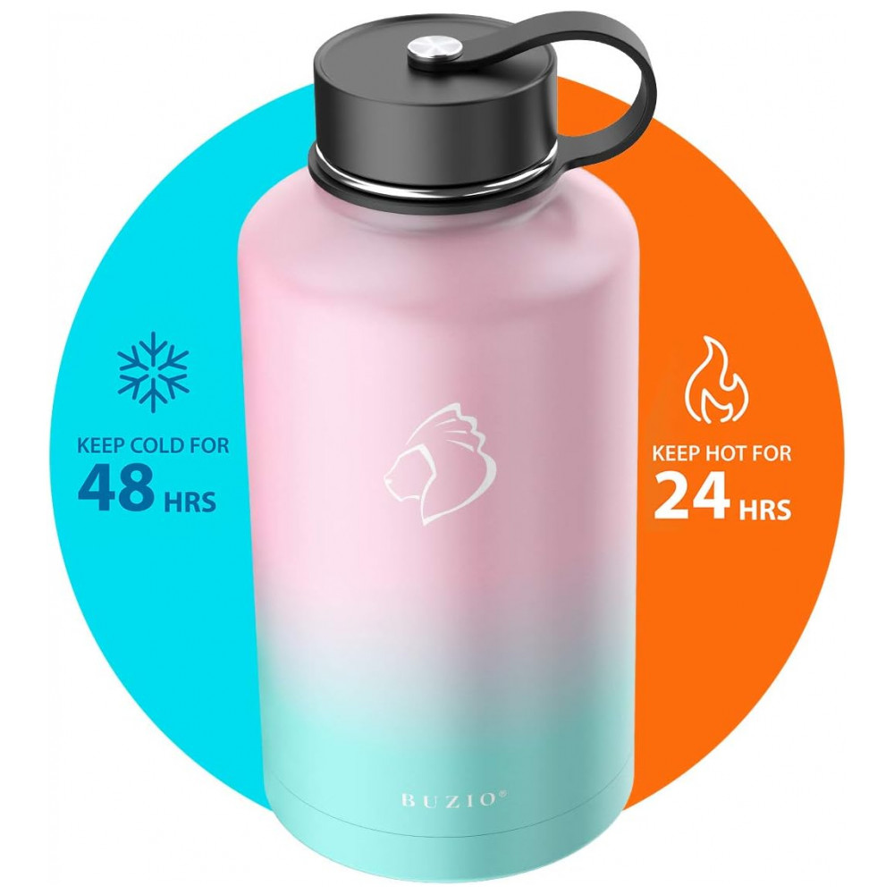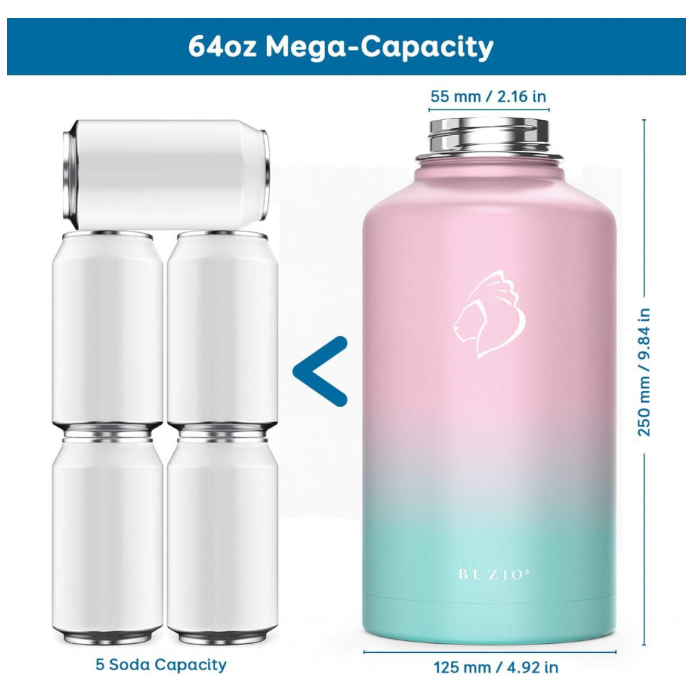 Garrafa Térmica 1900 mL Portátil com Isolamento a Vácuo, Aço Inoxidável, BUZIO, Rosa: Isolado a vácuo A tecnologia exclusiva TempArmour dentro desta garrafa de água isolada mantém a bebida fria por até 48 horas e quente por até 24 horas 2 Caps Pack Esta garrafa de água de aço inoxidável de 1900 L vem com tampa de palha e tampa flexível, a tampa flexível é perfeita para a praia, camping e caminhadas, enquanto a tampa de palha é adequada para ciclismo e viagem Material superior feito de plásticos 100 não tóxicos sem BPA e aço inoxidável 18, 8 durável de qualidade alimentar, protegendo o frasco de água da oxidação e da transferência de sabor
