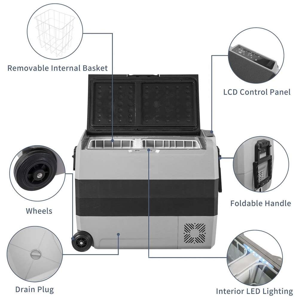 Geladeira, Cooler Elétrico 60L Portátil Automotivo com Controle de Temperatura, 12, 24V, ALPICOOL, Cinza: