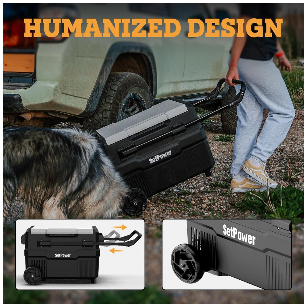 Geladeira e Congelador Portátil 43L com Zona Dupla Ajustável 12 24 V CC 100 240 V CA, Setpower RV45D PRO, Preto