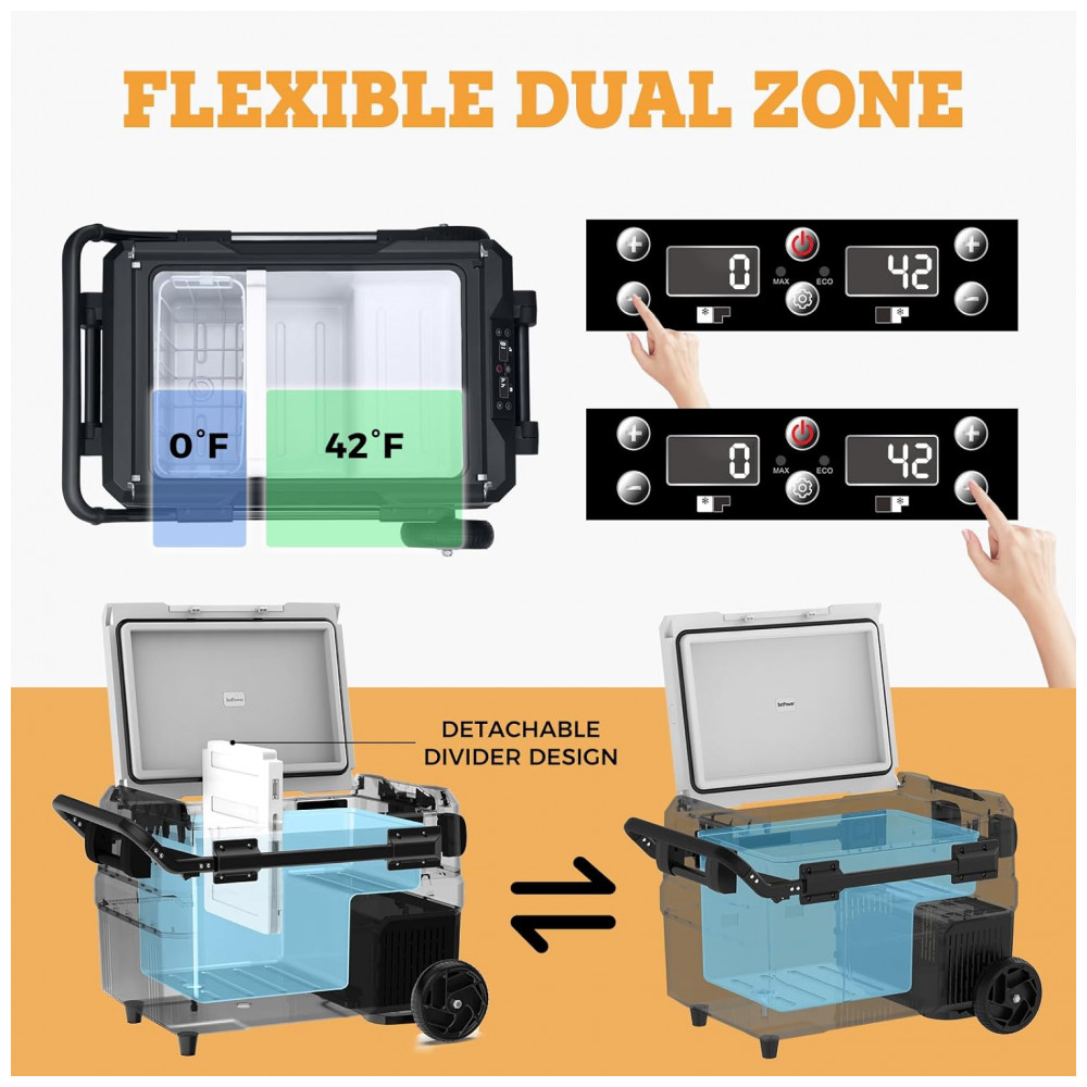 Geladeira Portátil 43L com Zona Dupla e Controle de Temperatura, 12V 24V DC 110V AC, F40C4TMP, Preto