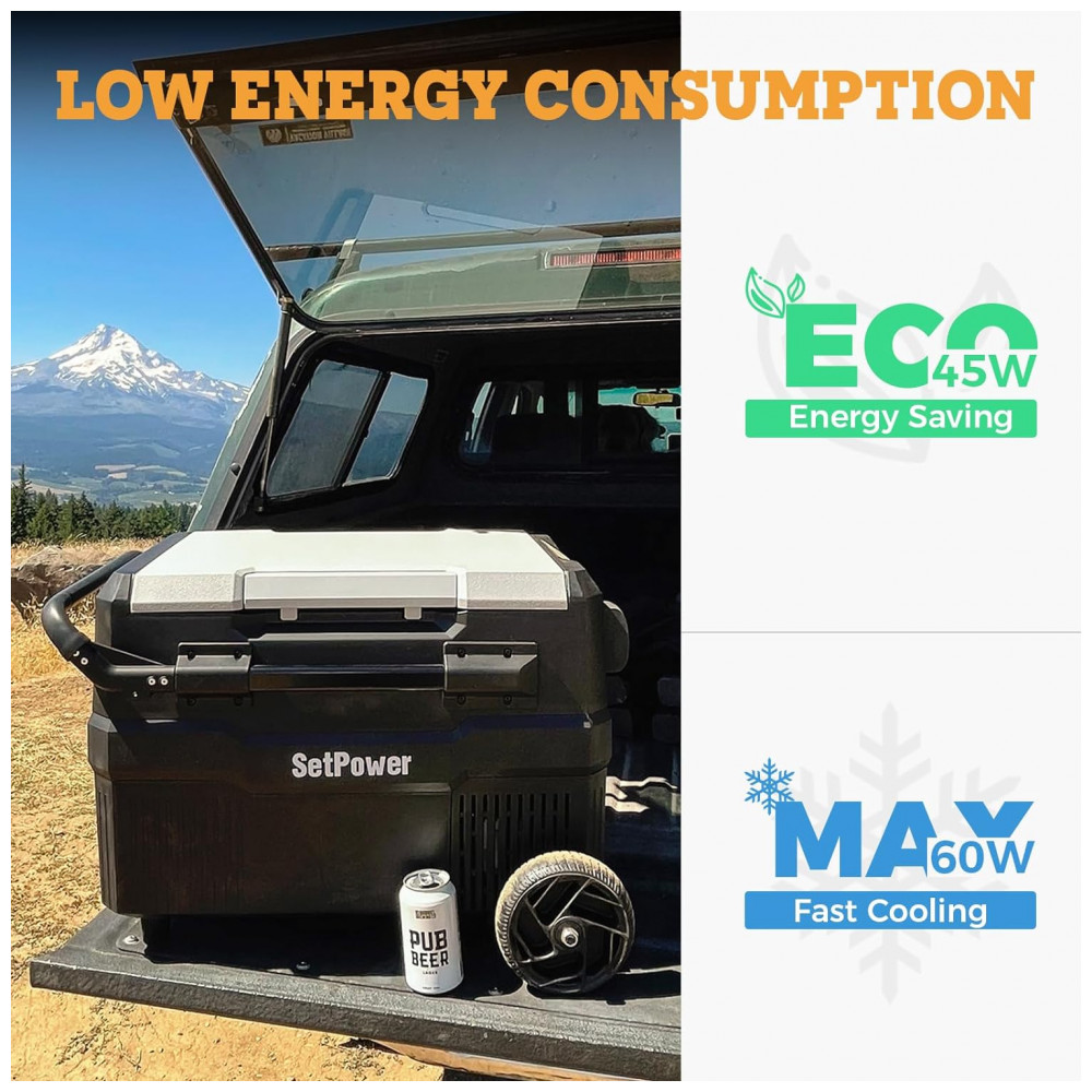 Geladeira e Congelador Portátil 43L para Carros, 12 24V DC 100 240V AC, SetPower RV45D PRO, Preto: GRANDE CAPACIDADE E ISOLAMENTO FANTÁSTICO Camada isolada superespessa e junta de borracha conferem a este refrigerador de carro de 12 volts um desempenho de resfriamento maravilhoso, mesmo em ambientes extremos.