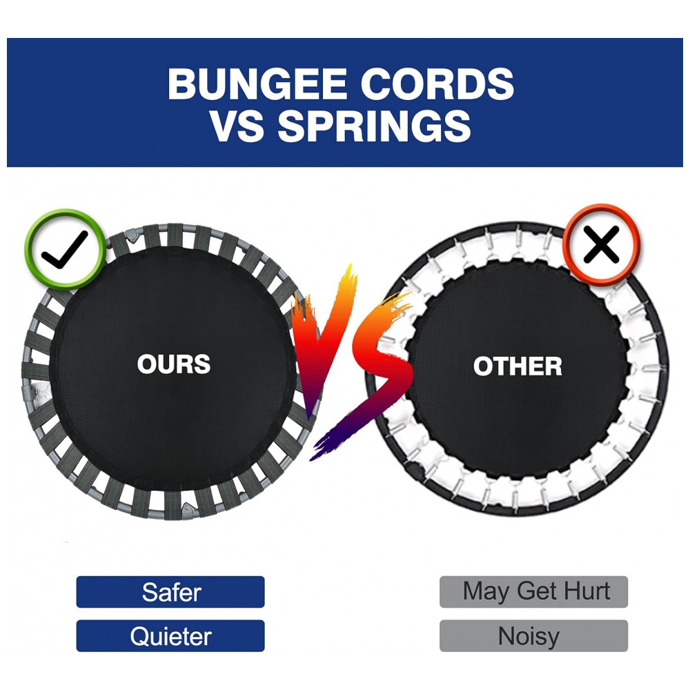 Mini Trampolim Silencioso Com 30 cordas elásticas duráveis, este trampolim fitness evita incomodar os outros.