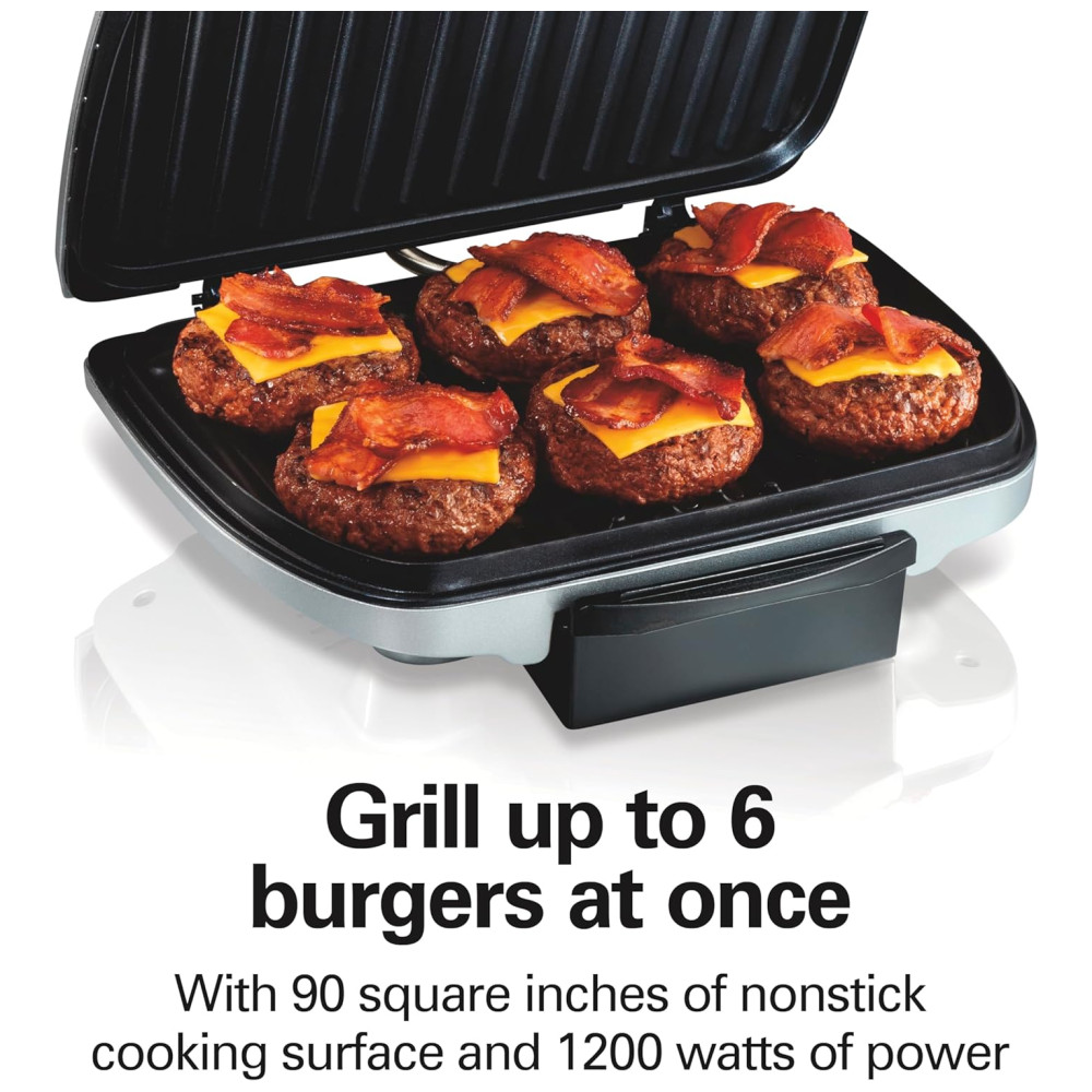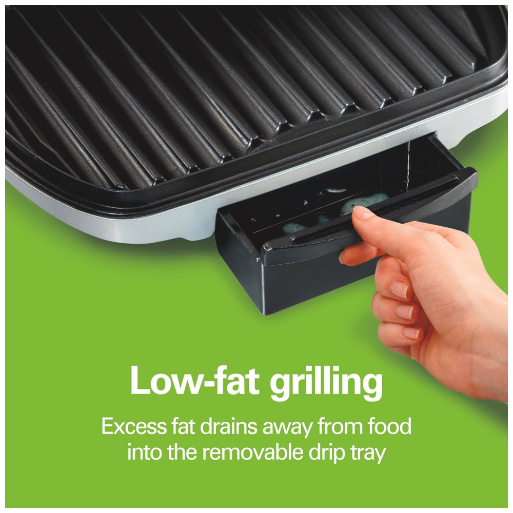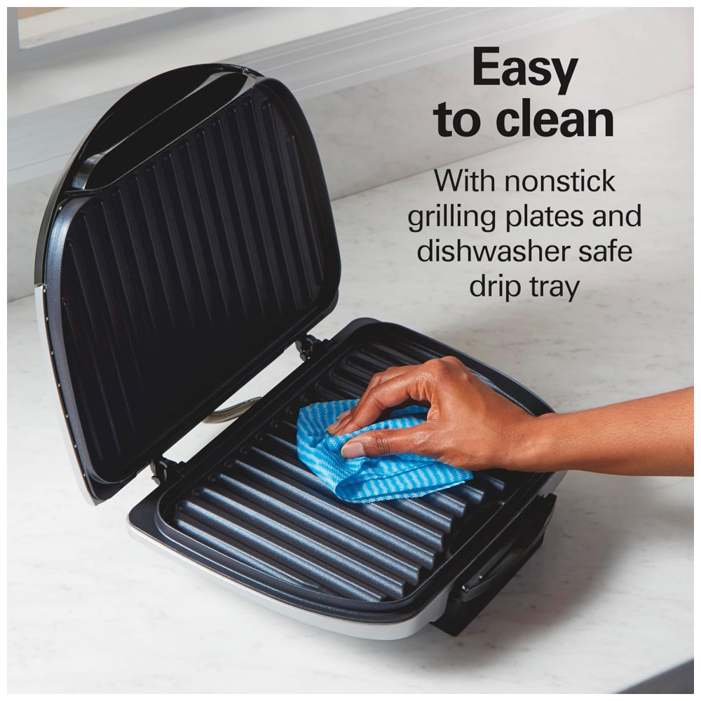 Grill elétrico para uso interno, 6 porções, antiaderente, fácil de limpar, HAMILTON BEACH 25371, Prateado