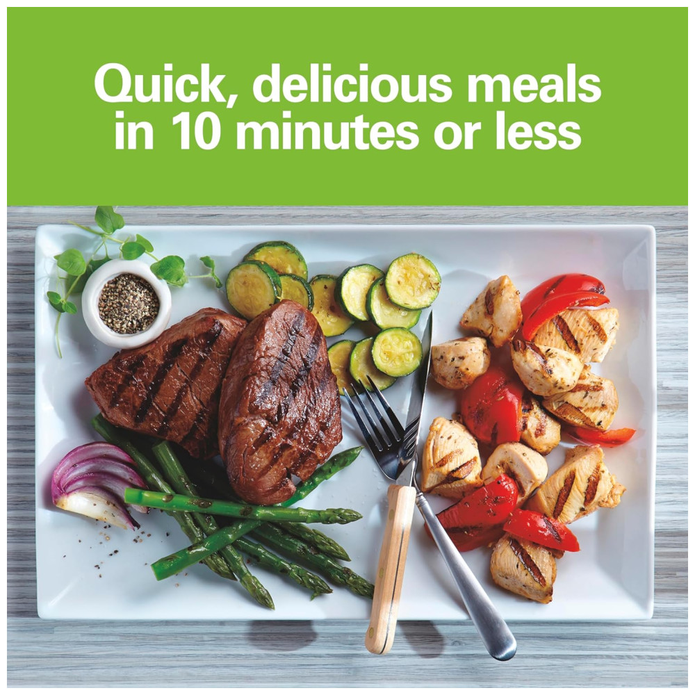 Refeições grelhadas em 10 minutos ou menos ótimo para uma refeição rápida e as gorduras drenam em uma bandeja removível Fácil de limpar as placas antiaderentes são facilmente limpas e a bandeja coletora remove para uma limpeza fácil e segura para máquina de lavar louça.