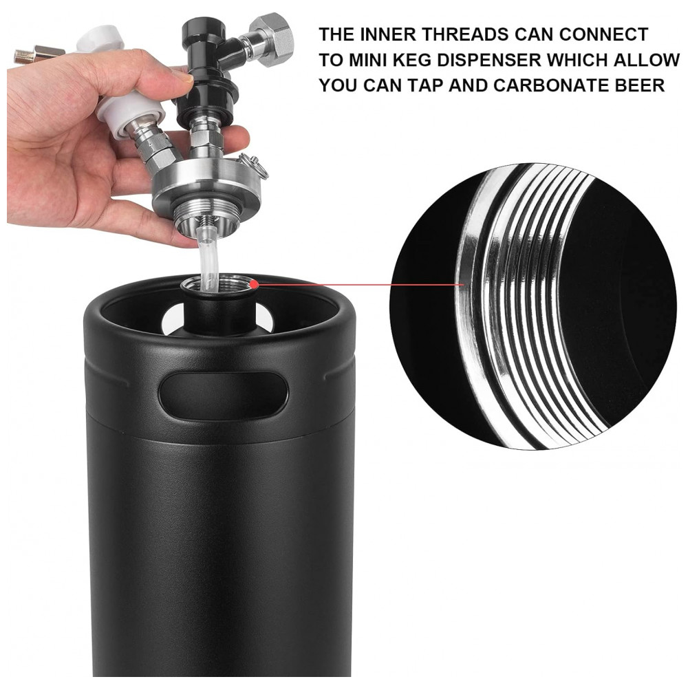 Todos os acessórios, incluindo barris, são feitos de aço inoxidável 304 de qualidade alimentar, que mantêm os sabores da cerveja e frescos LINHA INTERNA Este mini barril com rosca interna permite ser com um dispensador de mini barril e um conjunto de desconexão MFL com trava de bola, que ajuda você a fazer bebidas carbonatadas.