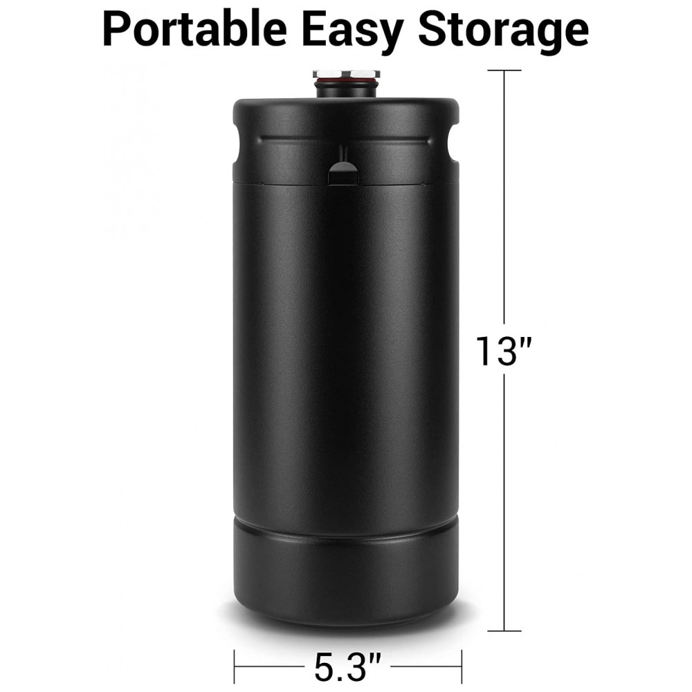 Growler Térmico 5L Portátil para Cerveja, Aço Inoxidável, GANCOWISE, Preto: TAMANHO PORTÁTIL O growler estilo mini barril de 5L é projetado para zenar todos os tipos de bebidas, o que é fácil de zenar e transportar.