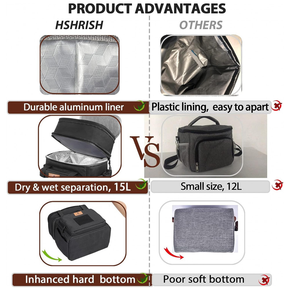 HSHRISH Bolsa Térmica Portátil 20L, Mantém Quente, Frio Por até 5H, Preto