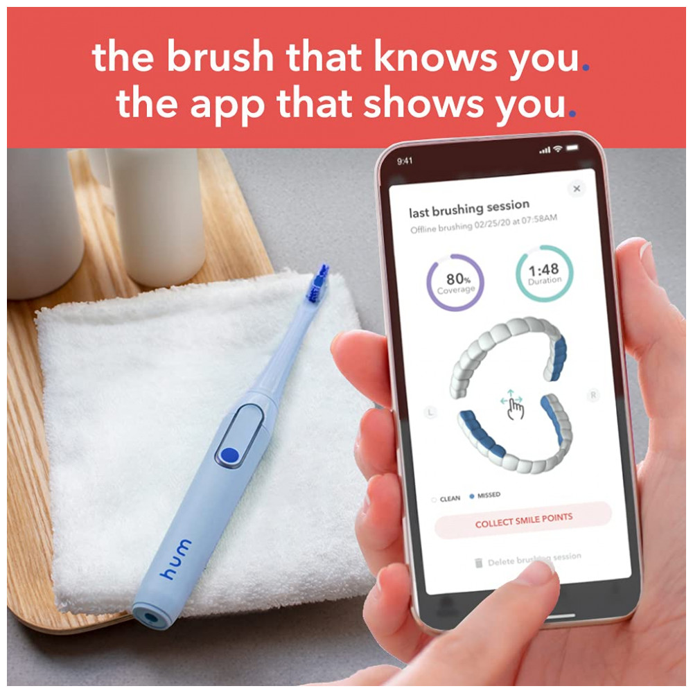 hum by Escova de Dentes Elétrica e Recarregável com Estojo de Viagem, Roxa, COLGATE CN08172A, Violeta: O kit inicial inclui 1 alça e cabeça de escova de dentes elétrica inteligente para adultos, 1 carregador, 1 estojo de transporte e uma cabeça de escova de recarga extra para mantê lo cantarolando por até 6 meses A escova de dentes inteligente o orienta para escovar melhor conectada, a escova de dentes Bluetooth visa os pontos que precisam de amor extra.