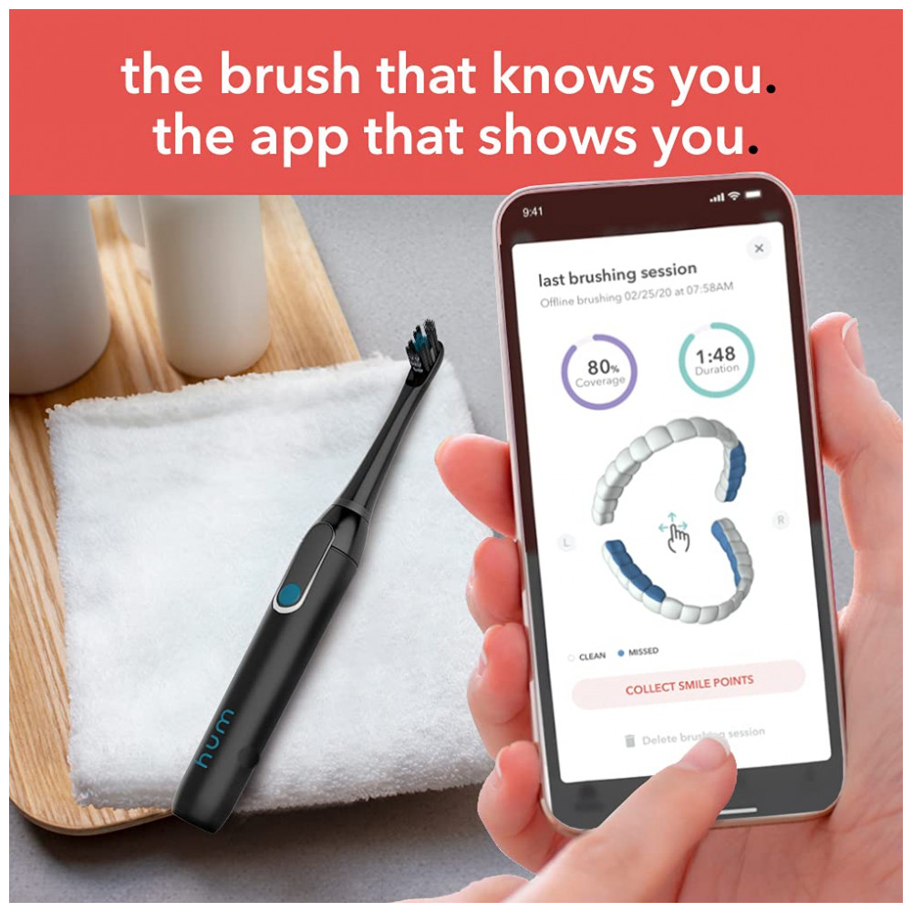 hum by Escova de Dentes Elétrica Inteligente e Recarregável para Adultos, COLGATE 61014851, Preto