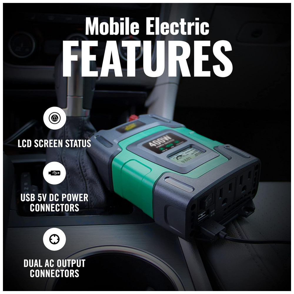 Inversor de Potência Automotivo 400W, 2 portas USB, BATTERY TENDER 026 0003 DL WH, Verde