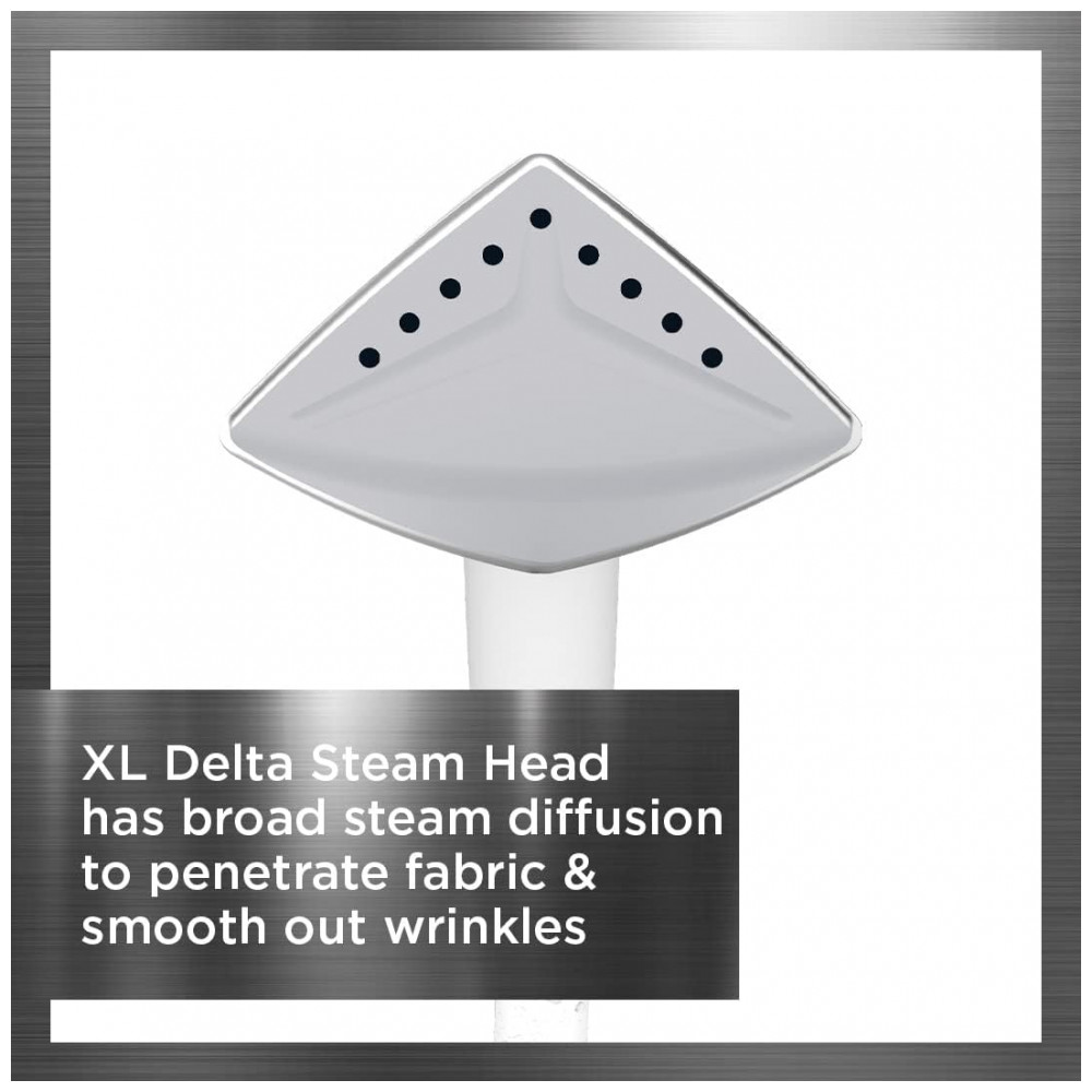 TELA DE VAPOR E IMPRENSA EXCLUSIVA E PATENTEADA Sistema de suporte vertical com resistência extra para fácil desenrugamento CABEÇA DE VAPOR XL DELTA Precisão máxima ao vaporizar e…
