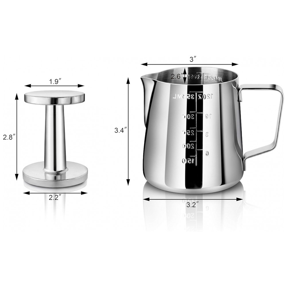 O conjunto inclui um jarro de espuma de construção em aço inoxidável 18, 8 resistente à ferrugem com acabamento polido e um compactador de alumínio fundido para serviços pesados Id…
