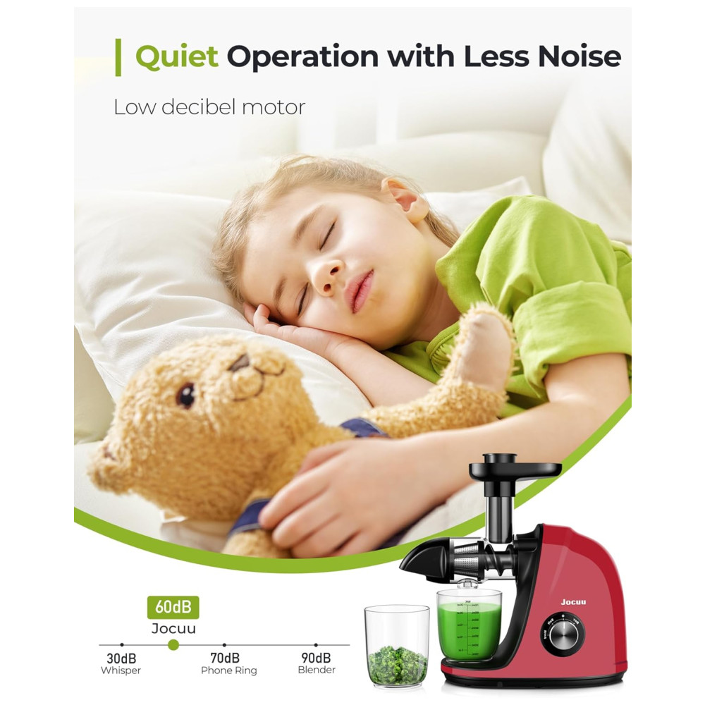 Jocuu Centrífuga de Frutas, Capacidade 700 mL, 150W, 110V, Vermelha: Atualizar dois modos de velocidade O espremedor de frutas Joccu tem dois modos de velocidade, macio e duro, adequado para todas as frutas e vegetais fibrosos, adequado para tipos macios laranja, uva, aipo, espinafre, laranja, etc.