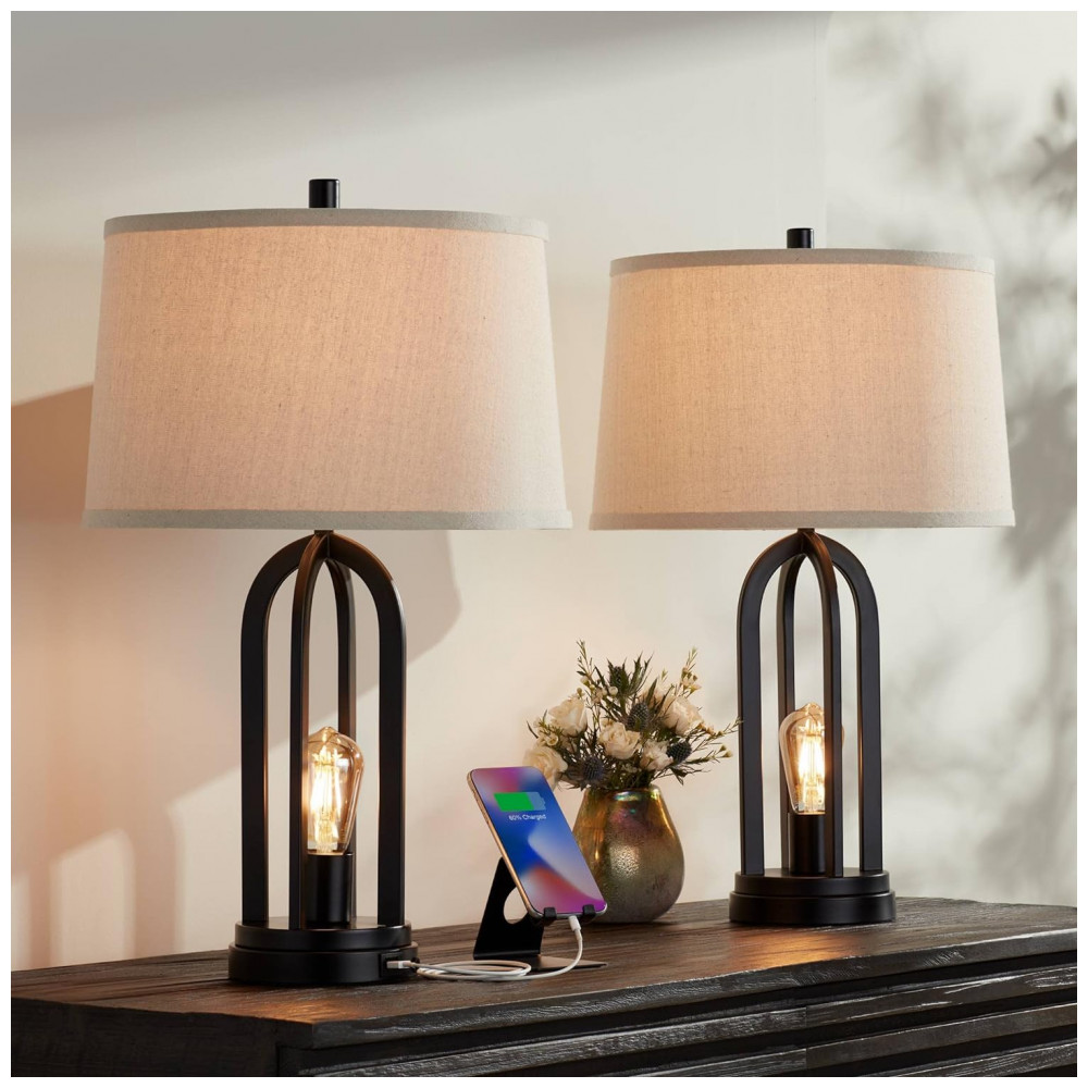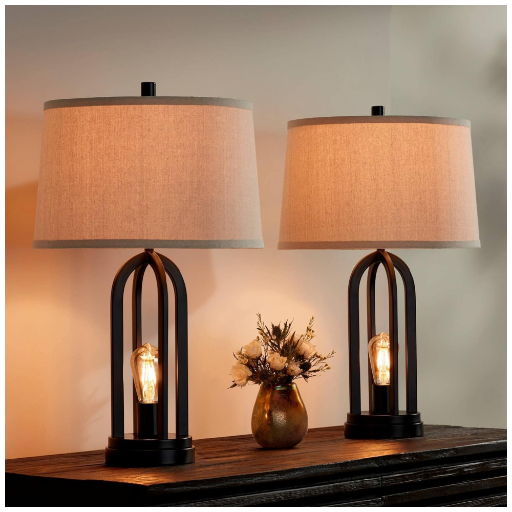 Kit 2 Luminárias de Mesa Vintage em Metal e Abajur de Tecido, 360 LIGHTING 35K12, Preto