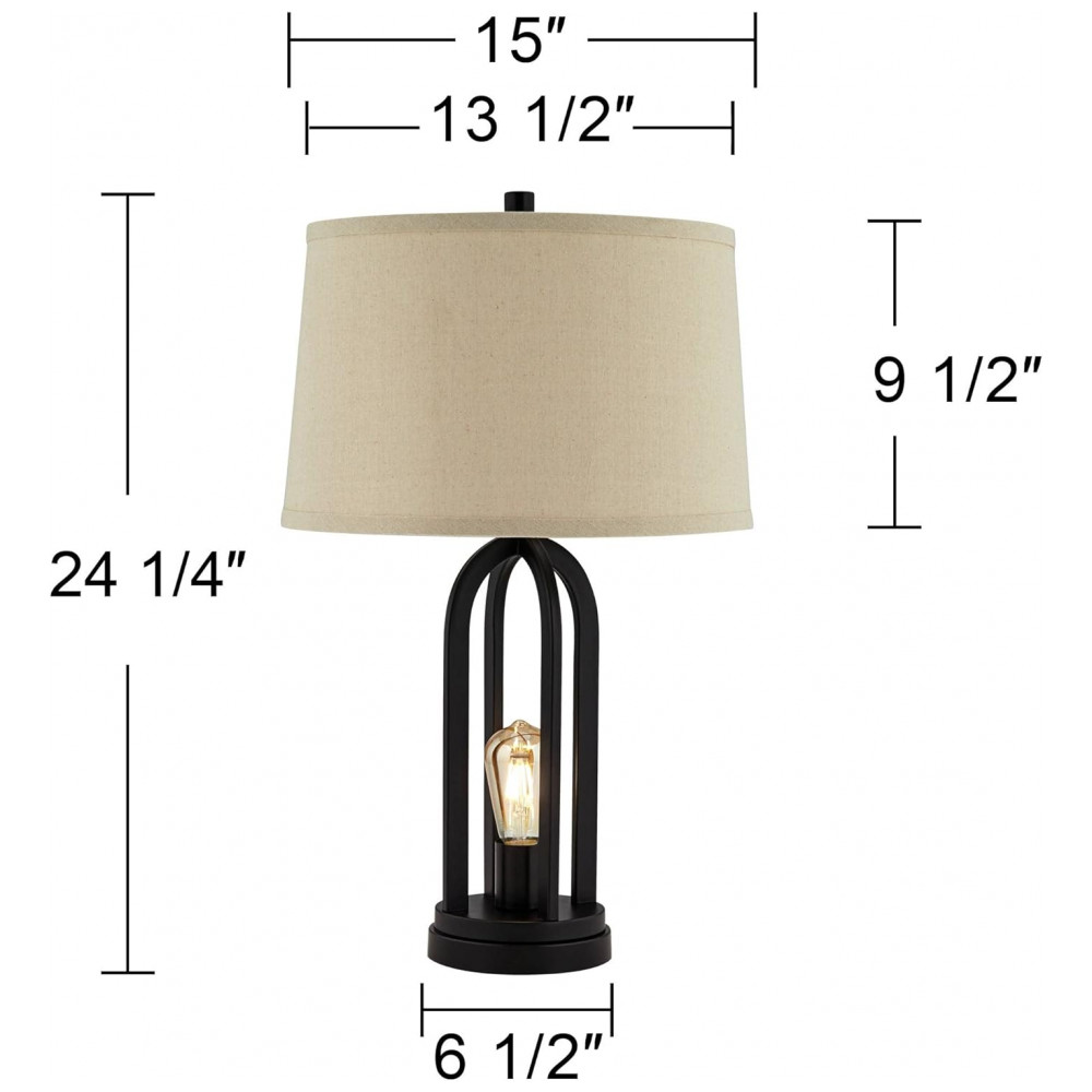 Kit 2 Luminárias de Mesa Vintage em Metal e Abajur de Tecido, 360 LIGHTING 35K12, Preto: Cada um usa uma lâmpada de base padrão média máxima de 100 watts para a luz superior.