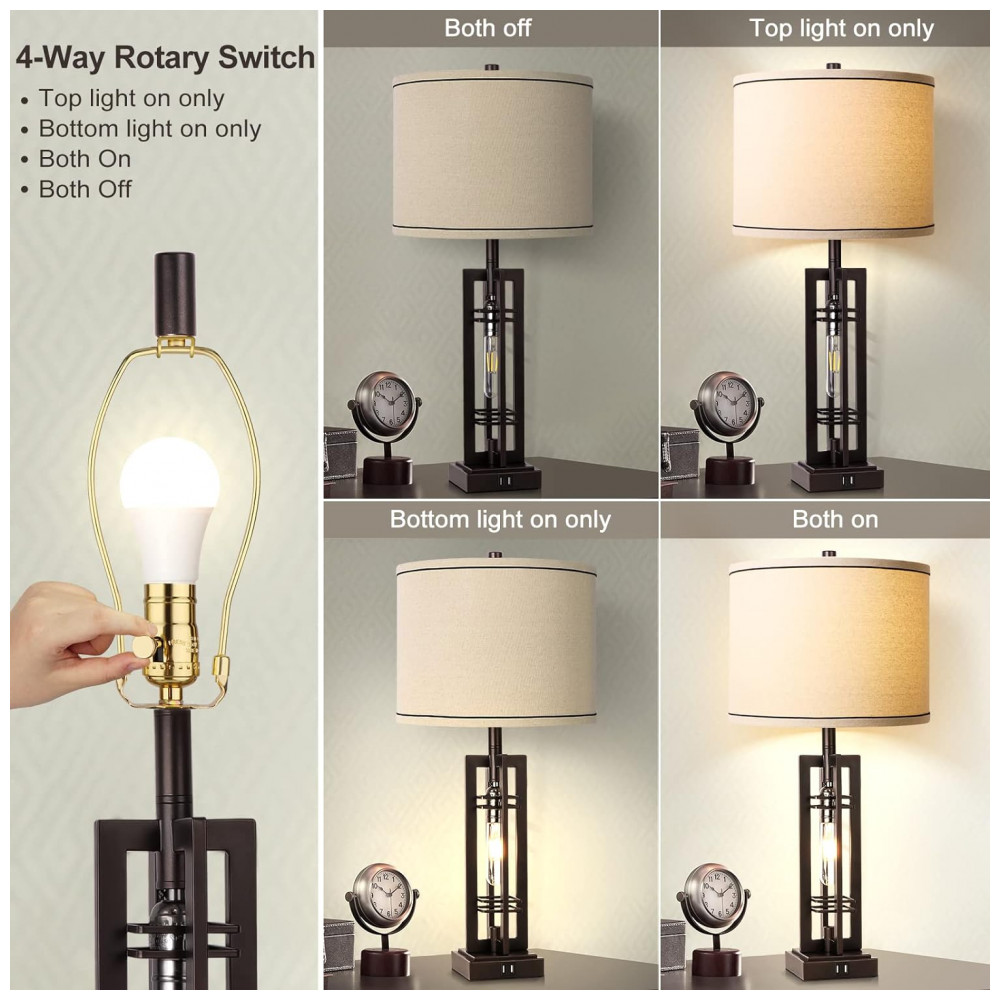2 luzes de cima e de baixo de 27,5 polegadas Conjunto de 2 lâmpadas Este conjunto de lâmpadas de mesa de fazenda oferece várias opções de iluminação. Você terá dois candeeiros de m…