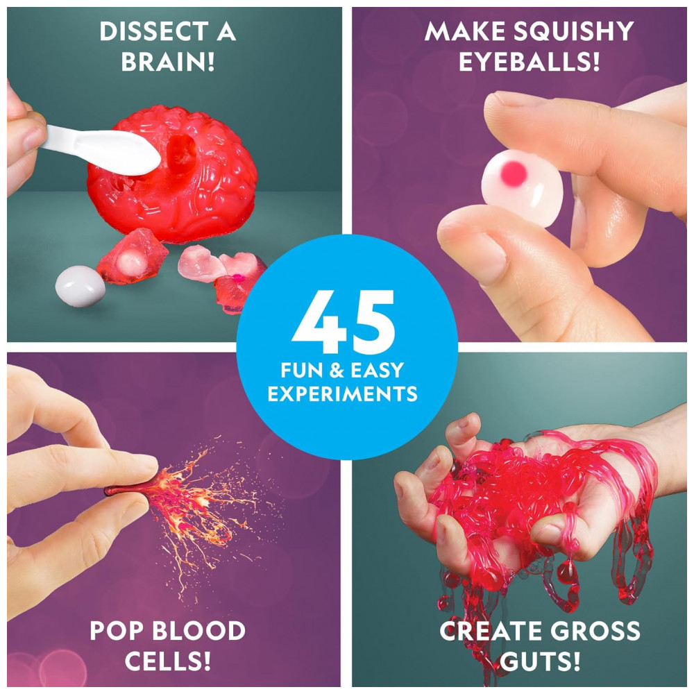 Inclui tudo para 15 experimentos super nojentos, além de 30 adicionais usando produtos domésticos.