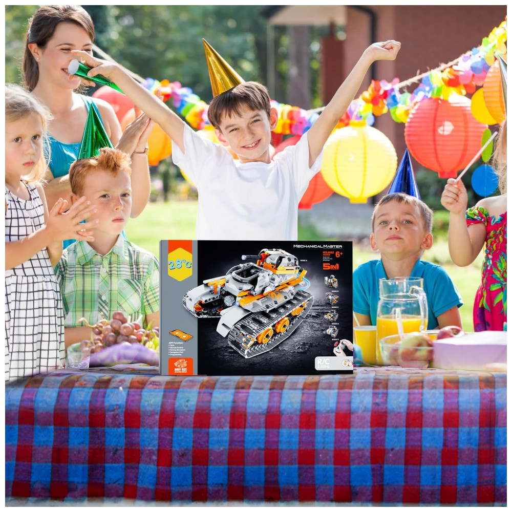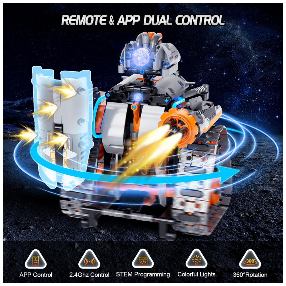 Os pais muitas vezes gostam de participar Este conjunto de construção 5 em 1 está equipado com efeitos de luz coloridos, cores frias e as crianças vão adorar Controle remoto e de aplicativos Em ambientes internos ou externos, pisos lisos ou estradas de montanha acidentadas, este conjunto de construção de veículos e robôs permite uma condução fácil de acrobacias.