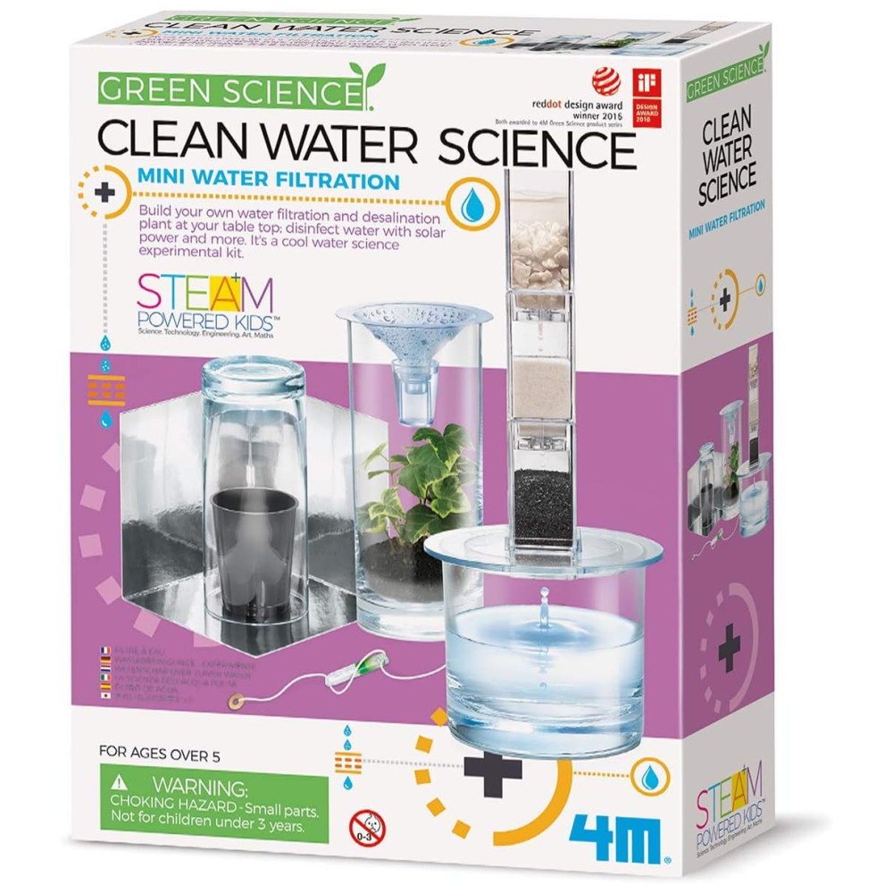 Com o kit 4M Clean Water Science, é possível criar um projeto de Ciência Verde e aprender como limpar e reutilizar água suja de maneira científica e divertida.