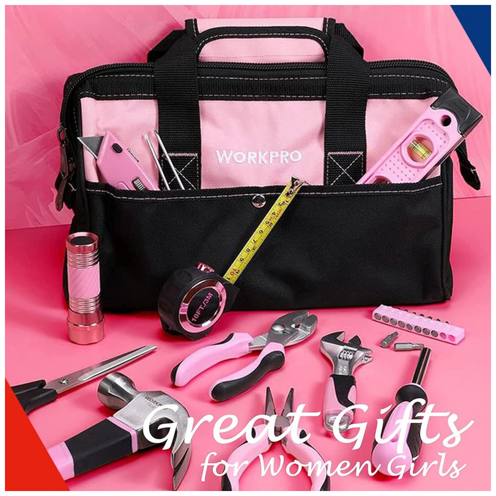 Kit de Ferramentas com Maleta de Transporte, 106 Peças, WORKPRO 8542034906, Rosa