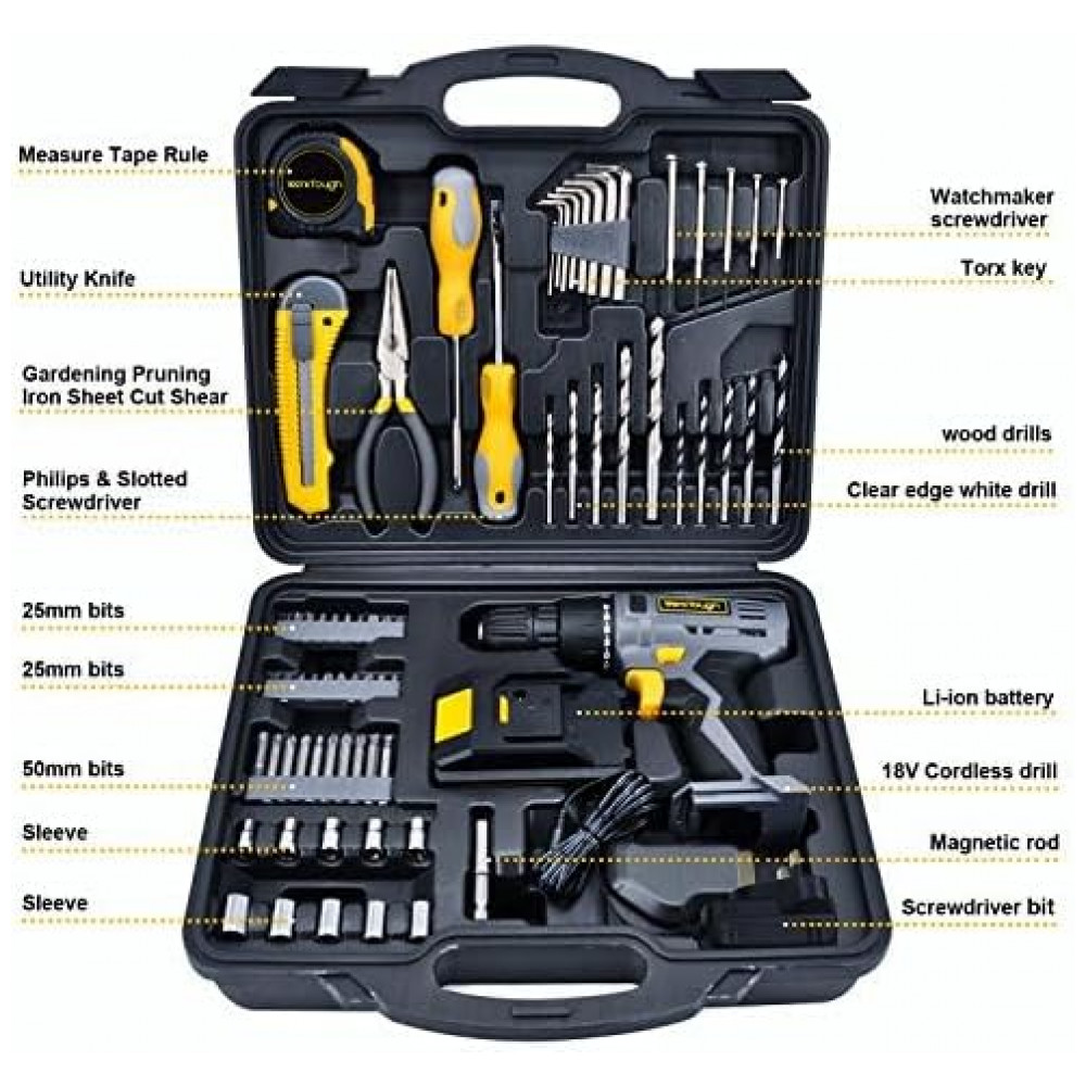 1. Com furadeira sem fio de 18v e carregador de bateria incluídos, você pode sentir um valor extra dentro deste kit de ferramentas de 77 peças. É um conjunto maravilhoso porque voc…
