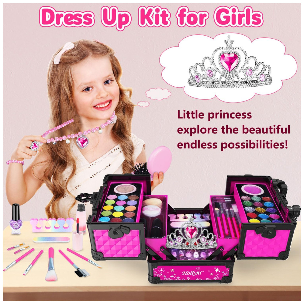 Kit de Maquiagem Infantil com 65 Peças Laváveis e Estojo para Crianças de 3 a 12 Anos, Hollyhi, Rosa: Kit de maquiagem moderna para crianças Conjunto de maquiagem de beleza com quase tudo o que você precisa para maquiagem e vestir se.