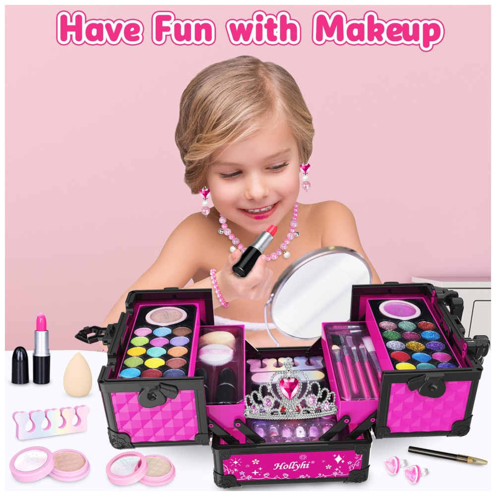 Kit de Maquiagem Infantil com 65 Peças Laváveis e Estojo para Crianças de 3 a 12 Anos, Hollyhi, Rosa