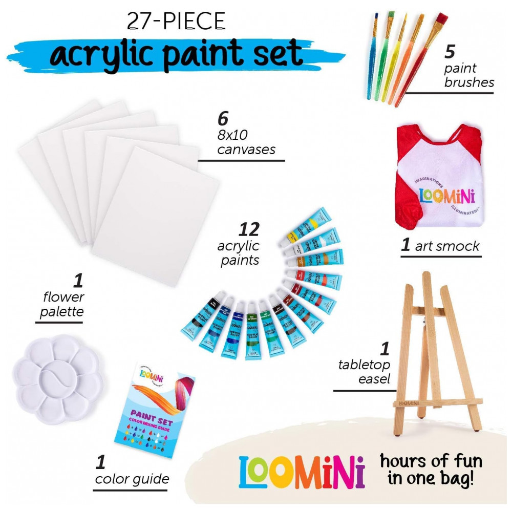 Kit de Pintura Conjunto Artístico com 27 Peças, Inclui 12 Tintas, LOOMINI, Marrom: AS CRIANÇAS PODEM FAZER UMA OBRA DE ARTE Este conjunto de 27 peças de artes e ofícios para crianças de 8 a 12 anos tem tudo Você receberá 12 tintas acrílicas, 6 telas 8×10 para pintura, 5 pincéis, 1 bata de arte, 1 cavalete de arte de mesa, 1 paleta de flores e 1 guia de cores.