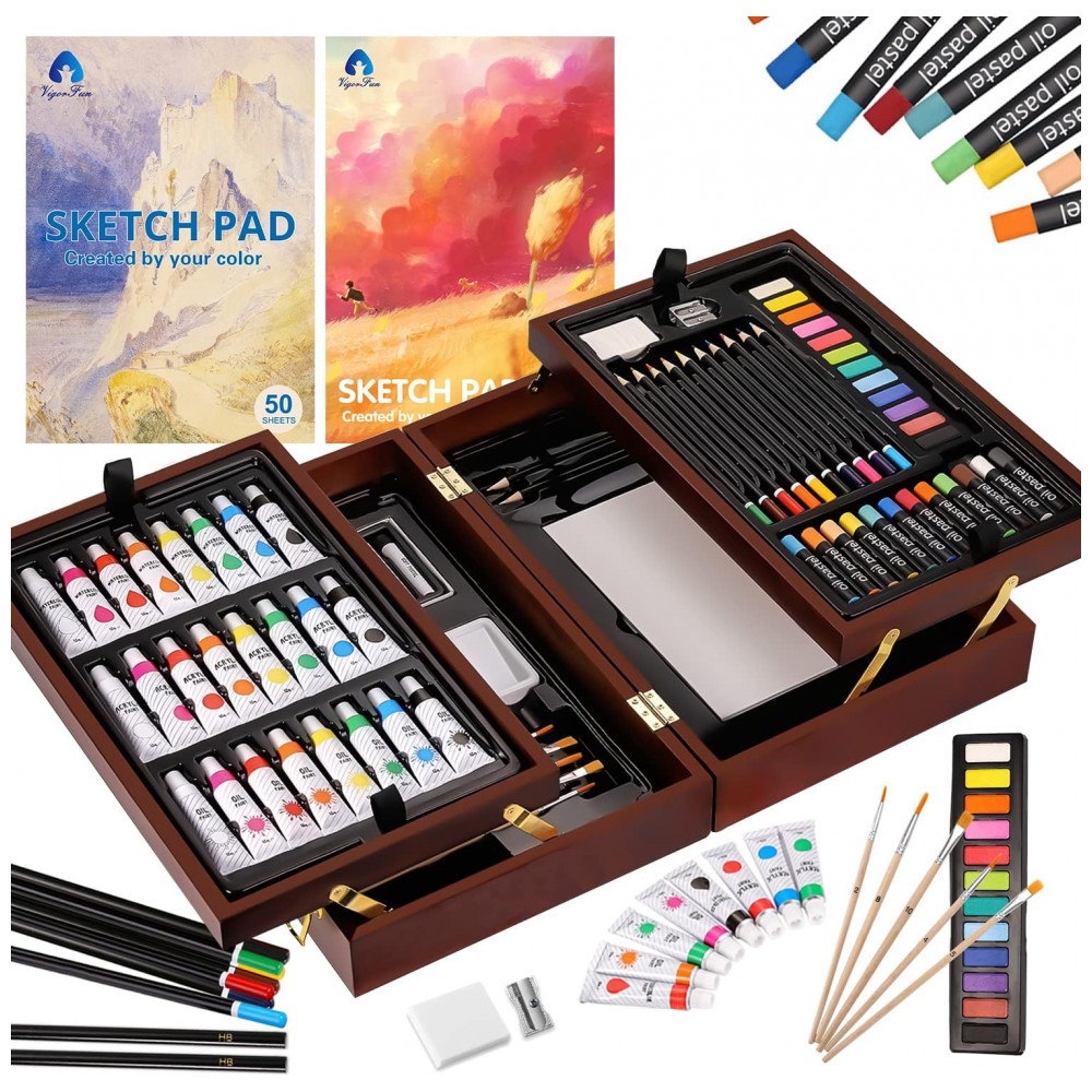 Kit de Pintura Conjunto Artístico com 85 Peças, Inclui 24 Tintas, VIGORFUN, Marrom: DESCUBRA O TALENTO ARTÍSTICO O kit de arte multifuncional contém vários materiais de desenho e pintura e é o melhor conjunto de arte para hobbistas mostrar talentos artísticos.