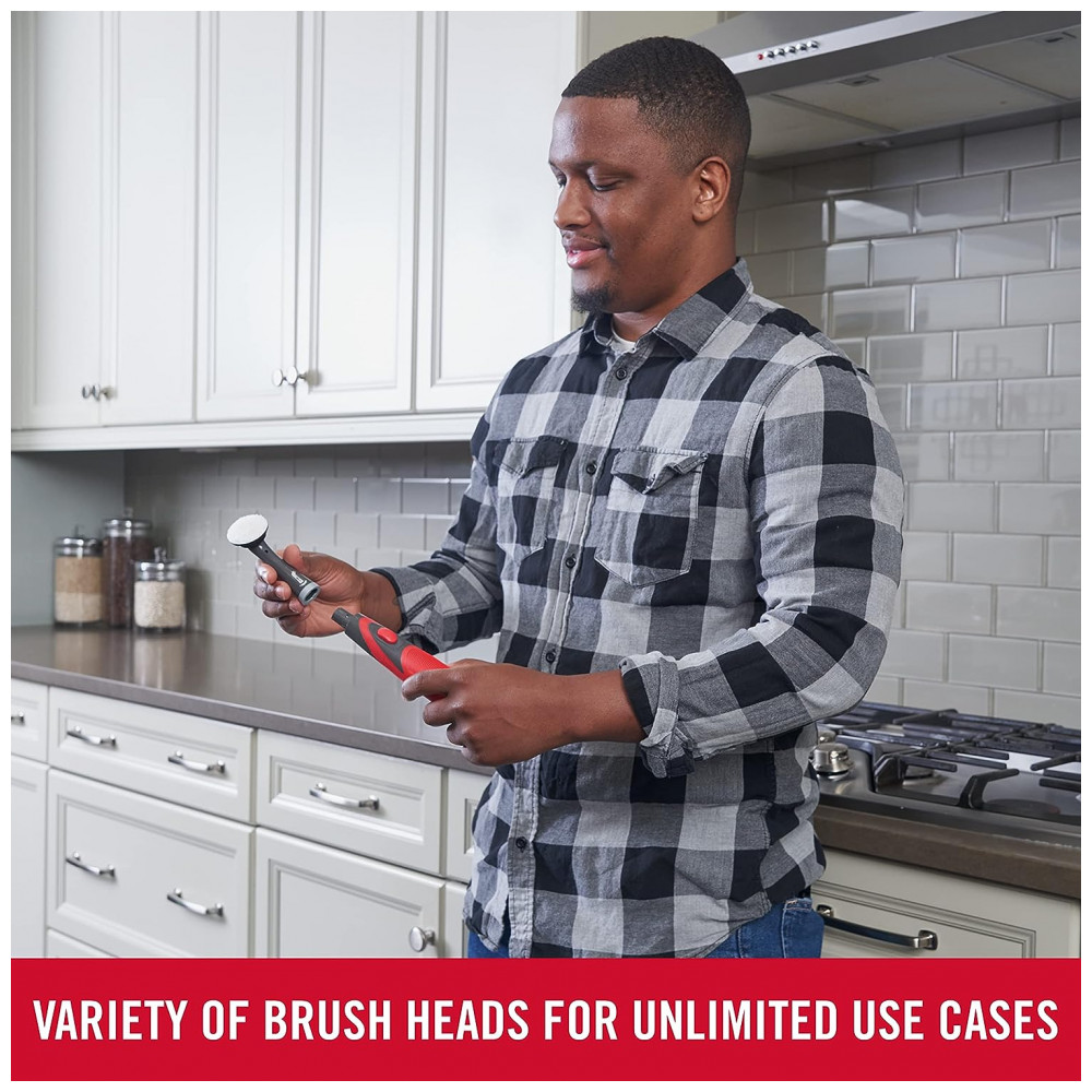 Kit Escova de Limpeza Elétrica sem Fio com Bateria, 18 Peças, Rubbermaid: O KIT INCLUI 1 cabo motorizado, 1 cabeça XL, 1 cabeça grande, 1 escova de cerdas macias, 1 escova de argamassa, 1 cabeça de velcro, 6 refis de esfregão e 6 refis de microfibra PODER DE ESFREGA RÁPIDA Ferramenta de limpeza potente projetada para limpar até 2 vezes mais rápido do que uma lavadora manual ECONOMIA DE TEMPO A cabeça oscilante esfrega 60 vezes por segundo RESISTENTE À ÁGUA Conjunto resistente a líquidos para a durabilidade que você espera da Rubbermaid 2 CONFIGURAÇÕES DIFERENTES Configurações de esfrega contínua e pulsada GRIP ERGONÔMICO Pega macia e confortável PILHAS INCLUÍDAS Ferramenta possui 6 volts de energia e vem com 4 pilhas AA MULTIUSO Ideal para linhas de rejunte, cantos, fendas e espaços apertados