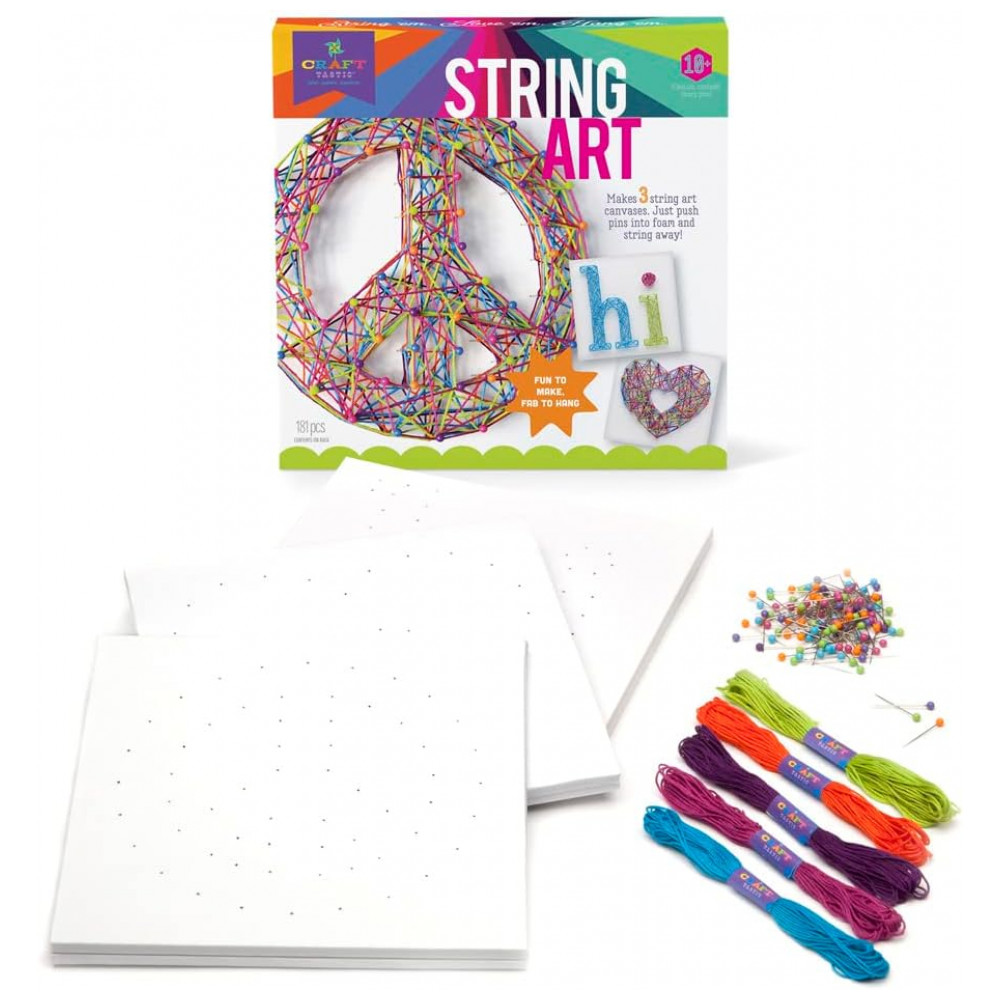 KIT COMPLETO DE ARTES E ARTESANATOS PARA ADOLESCENTES E ADOLESCENTES O Craft tastic String Art Kit inclui instruções detalhadas, 3 diferentes telas de espuma resistentes pré impressas de , 60 metros de linha e 170 pinos.
