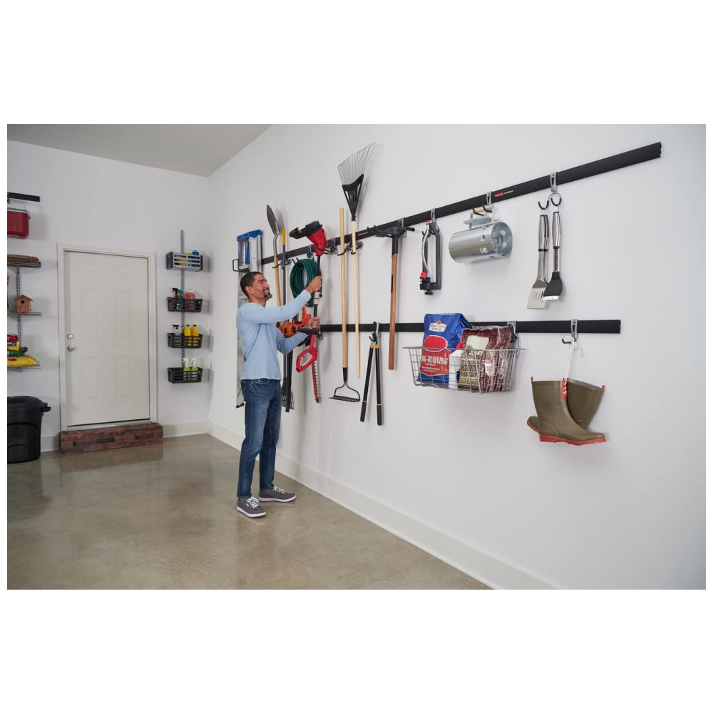 Kit Organizadores de Parede para Garagem 6 Trilhos e 18 Ganchos Rubbermaid