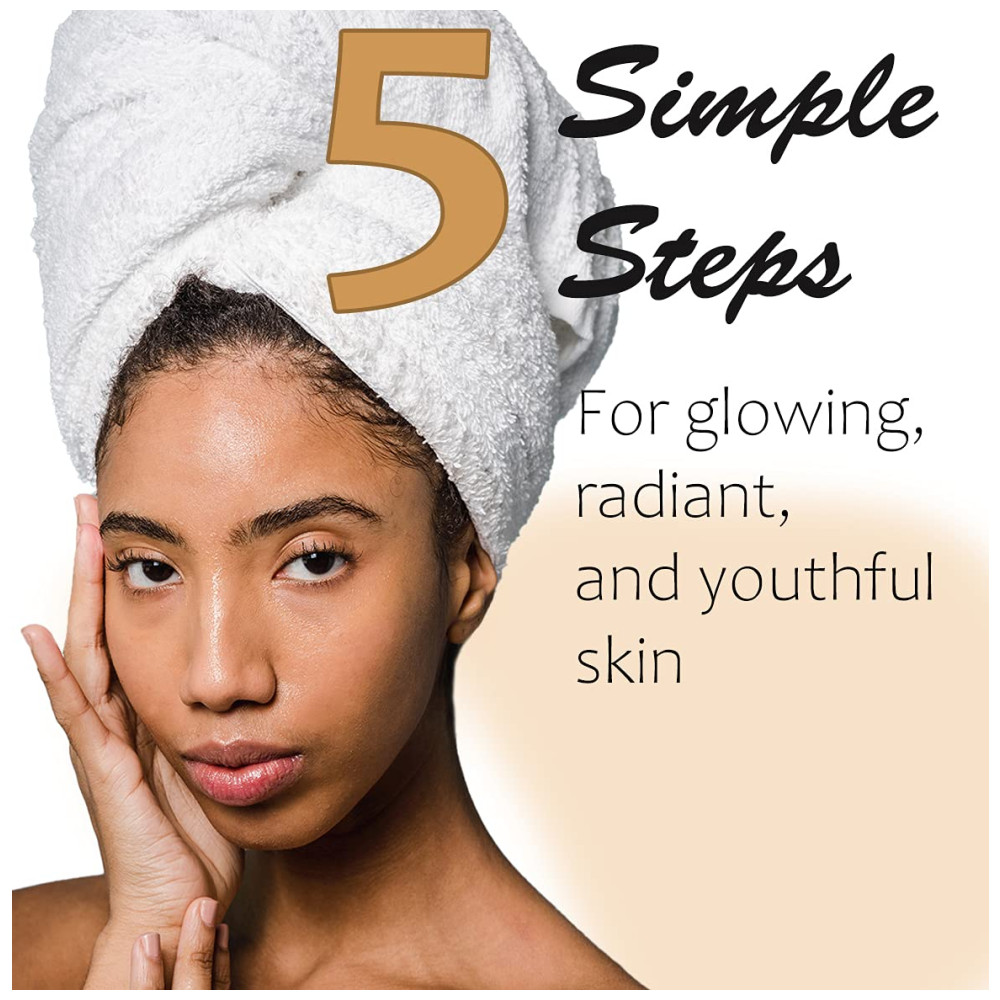 Ele contém um sérum facial, creme, loção revitalizante, tônico facial e limpador, tornando o o conjunto antienvelhecimento perfeito para mulheres.