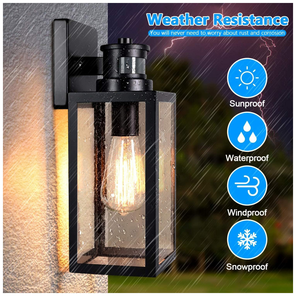 O soquete da lâmpada se encaixa em qualquer lâmpada com soquete E26 padrão, mas lembre se de aplicar lâmpadas LED incandescentes ou reguláveis a essas luzes de parede externas para evitar cintilação, porque as luminárias de parede externas à prova dágua têm diferentes níveis de luz