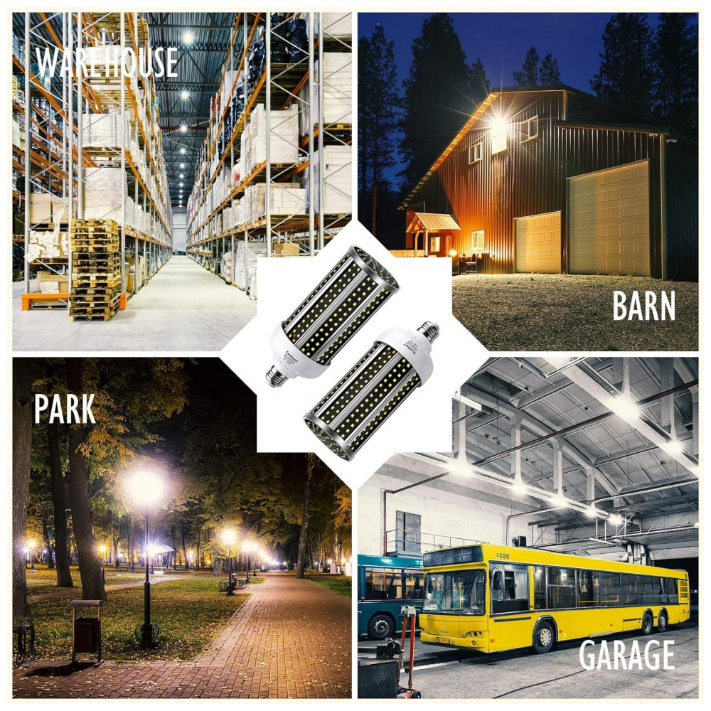 Lâmpada LED 500W 5500 Lumens 6500K Branca com Base E26, E27, 2 Unidades, FANNICOO, Prateado
