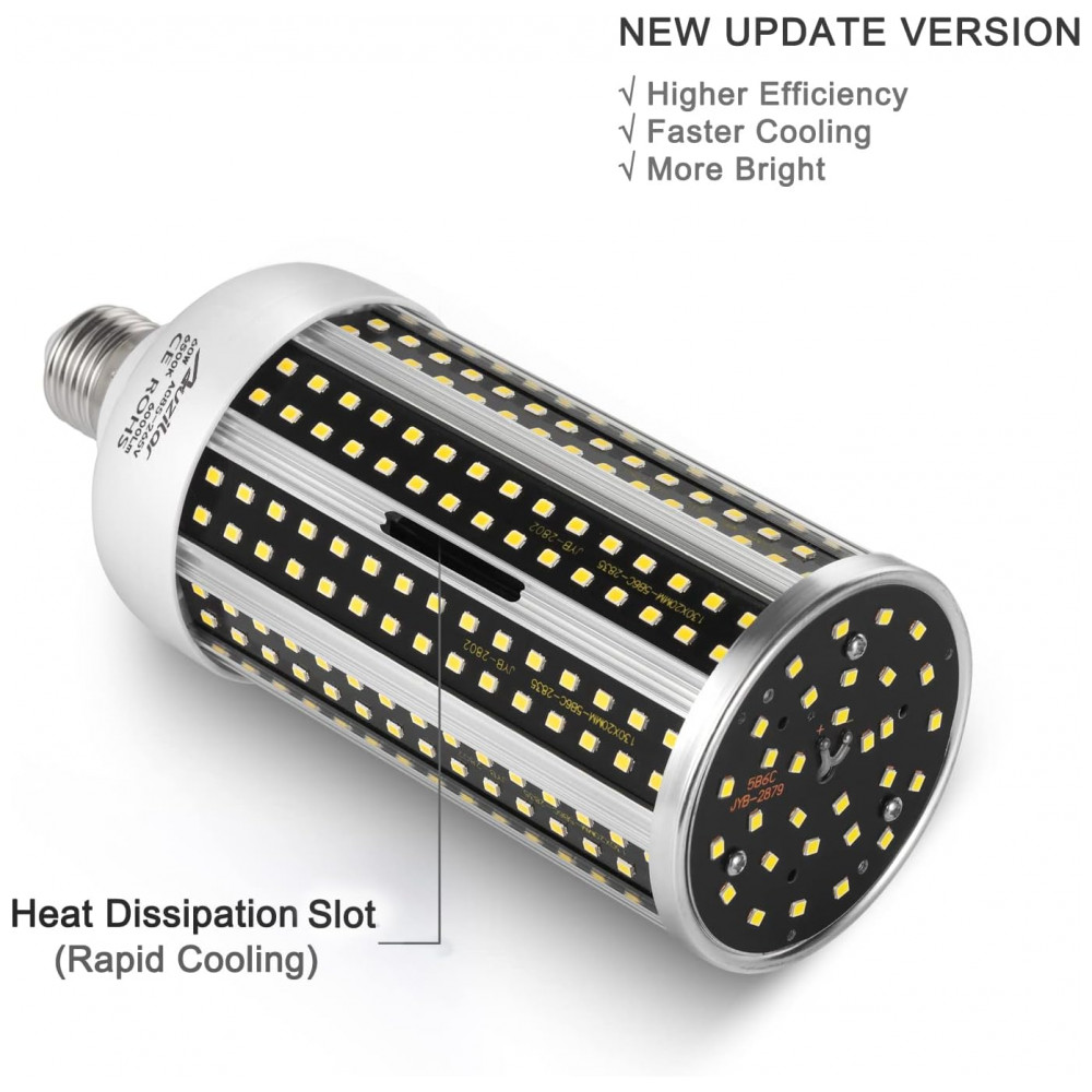 Lâmpada LED 500W 6000 Lumens 6500K Branca com Base E26, E27, 2 Unidades, AUZILAR, Branco: ECONOMIA DE ENERGIA As lâmpadas Led Candelabra substituem a lâmpada incandescente de 450W por LED de 60W.