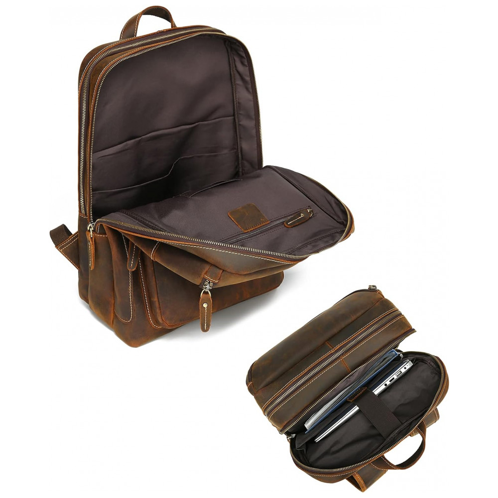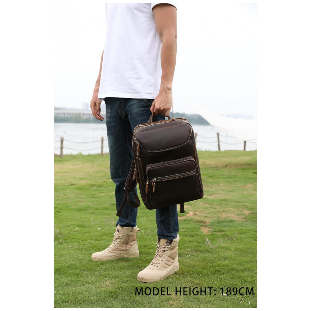 Trabalhada em couro de flor integral italiano vintage refinado, rugas e arranhões bagunçados na superfície criam uma aparência retrô e selvagem. Construção 3 compartimentos princip…