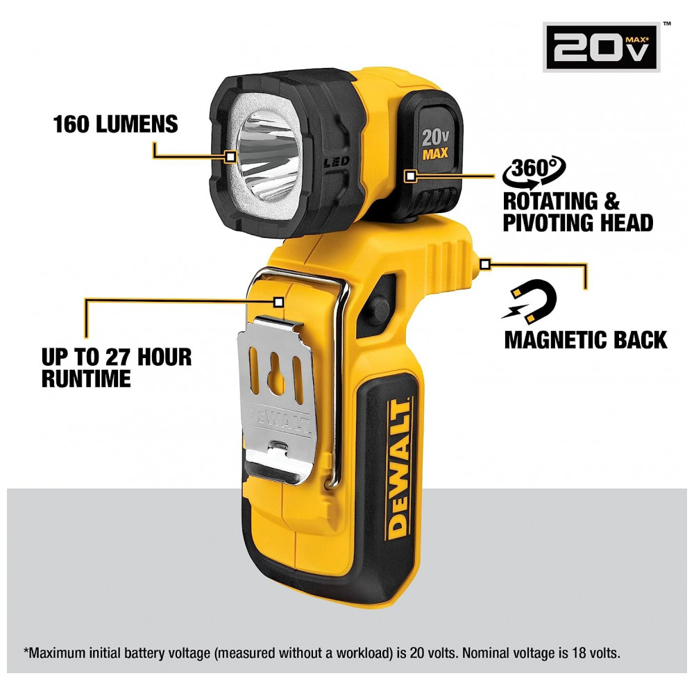 Lanterna Led, 160 lumens, 20 V, DEWALT DCL044, Amarelo: Saída LED brilhante de 160 Lumens.