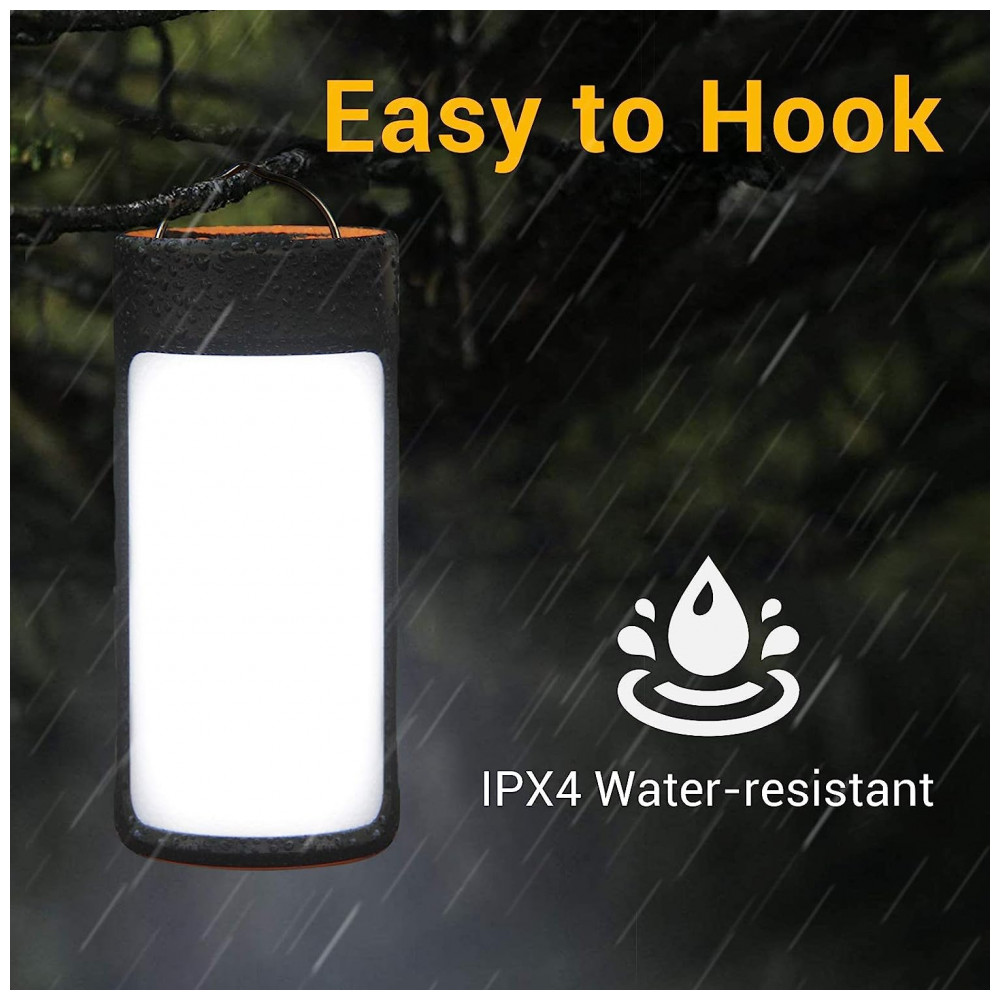 A luz de acampamento portátil é IPX4 resistente à água que não se preocupa com pequenas chuvas ou respingos de água em todas as direções, perfeita para uso interno e externo